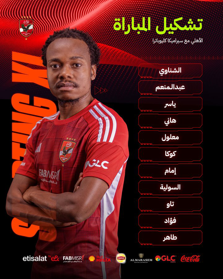 كأس السوبر المصري، أعلن السويسري مارسيل كولر المدير الفني للفريق الأول لكرة القدم بالنادي الأهلي عن تشكيل الفريق لخوض مباراة سيراميكا كيلوباترا المقرر إقامتها في تمام الساعة السابعة مساء اليوم الاثنين على ملعب محمد بن زايد بالعاصمة الإماراتية أبوظبي.