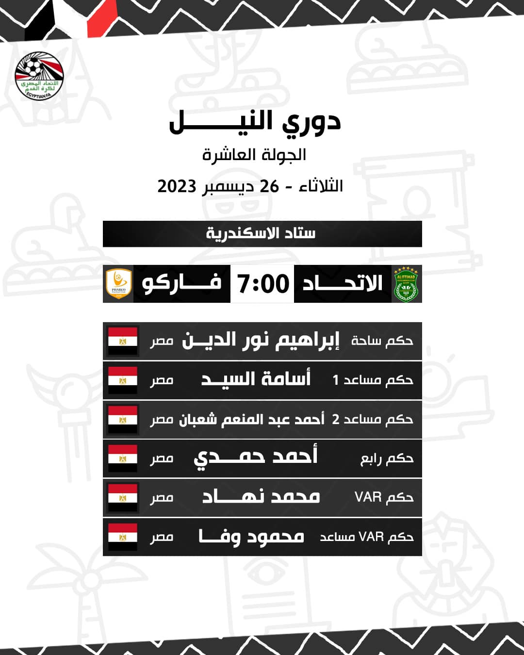 حكام مباراة الاتحاد السكندري أمام فاركو