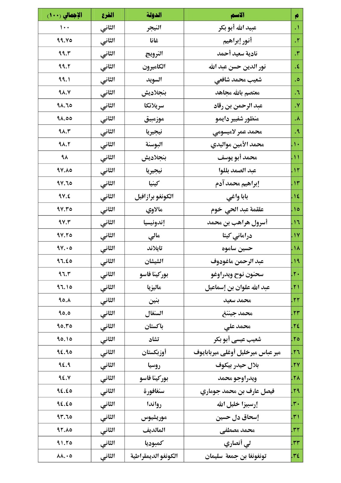وفي سياق متصل أعلنت وزارة الأوقاف عن تفاصيل نتيجة الأسرة القرآنية الفرع السادس في المسابقة العالمية الثلاثين للقرآن الكريم، والتي جاءت كالتالي: