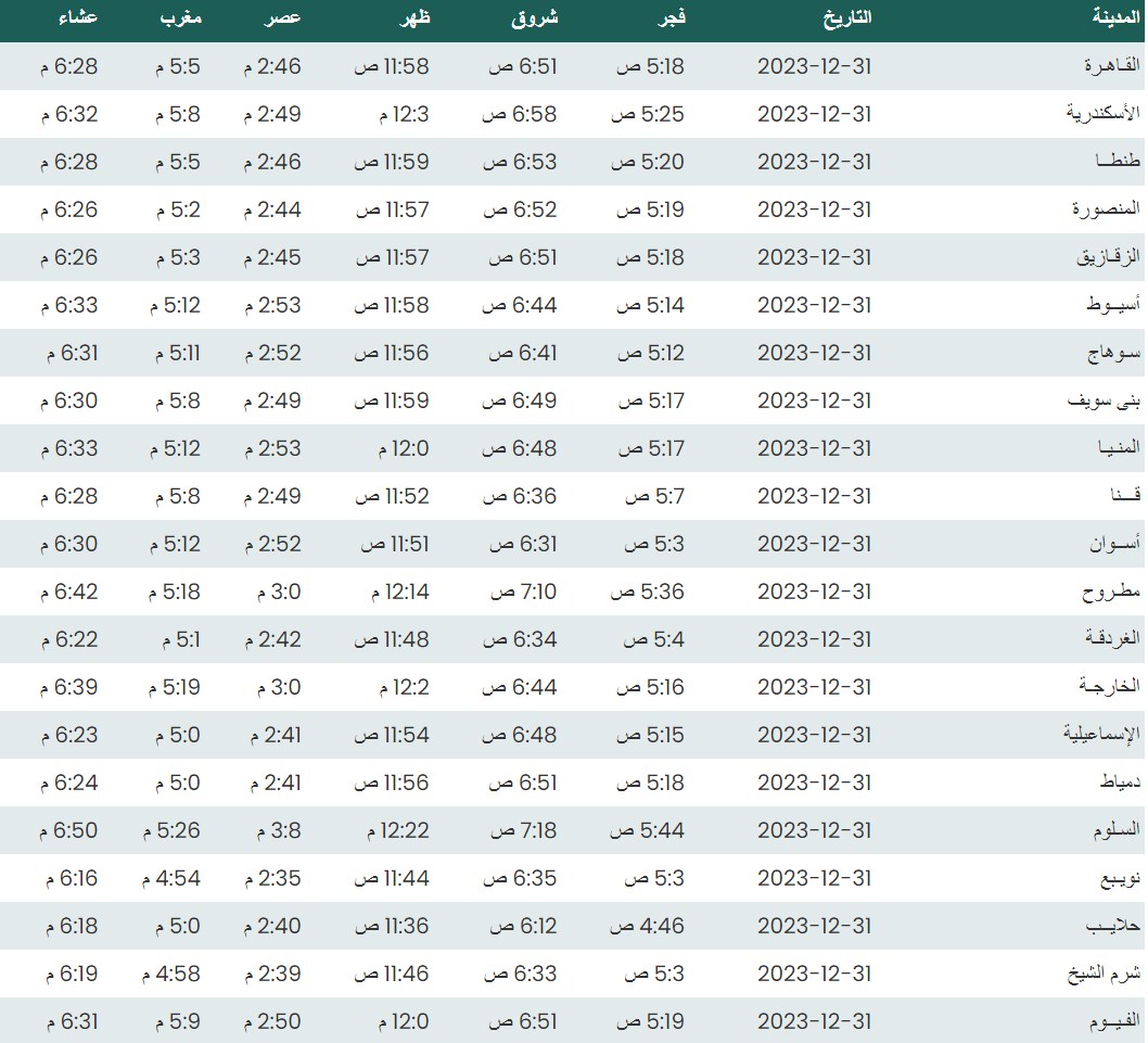 مواقيت الصلاة اليوم، موعد أذان المغرب اليوم الأحد 31 - 12 - 2023 في القاهرة والمحافظات