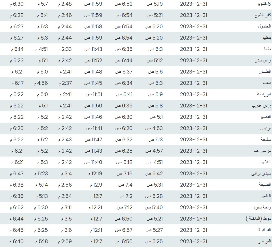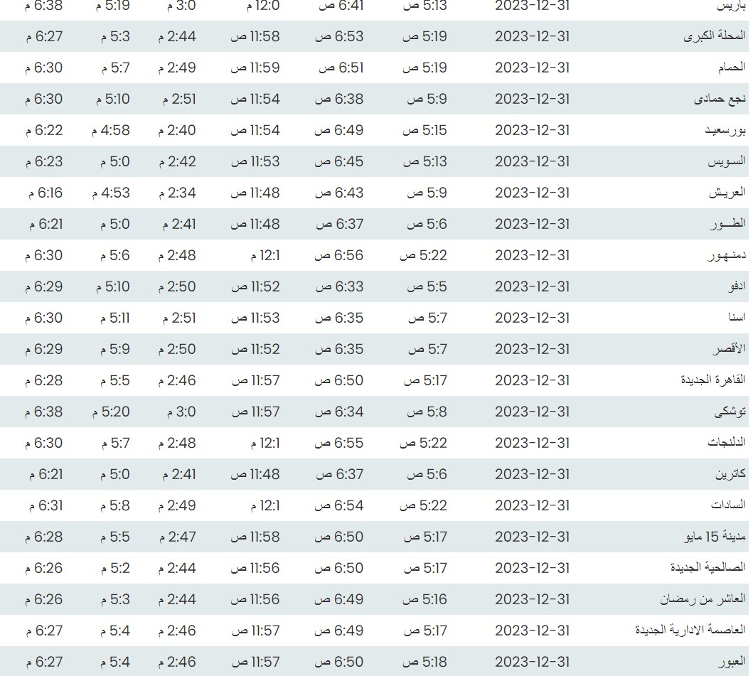 وفيما يلي مواقيت الصلاة، لعدد من مدن ومحافظات الجمهورية من واقع بيانات الهيئة العامة للمساحة