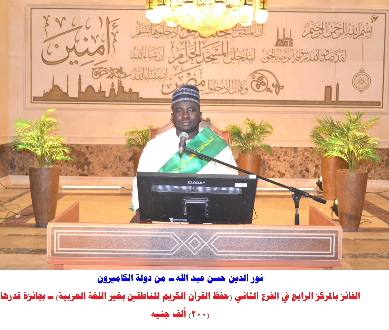 نور الدين حسن عبد الله ــ من دولة الكاميرون ــ الفائز بالمركز الرابع في الفرع الثاني ــ بجائزة قدرها 200 ألف جنيه