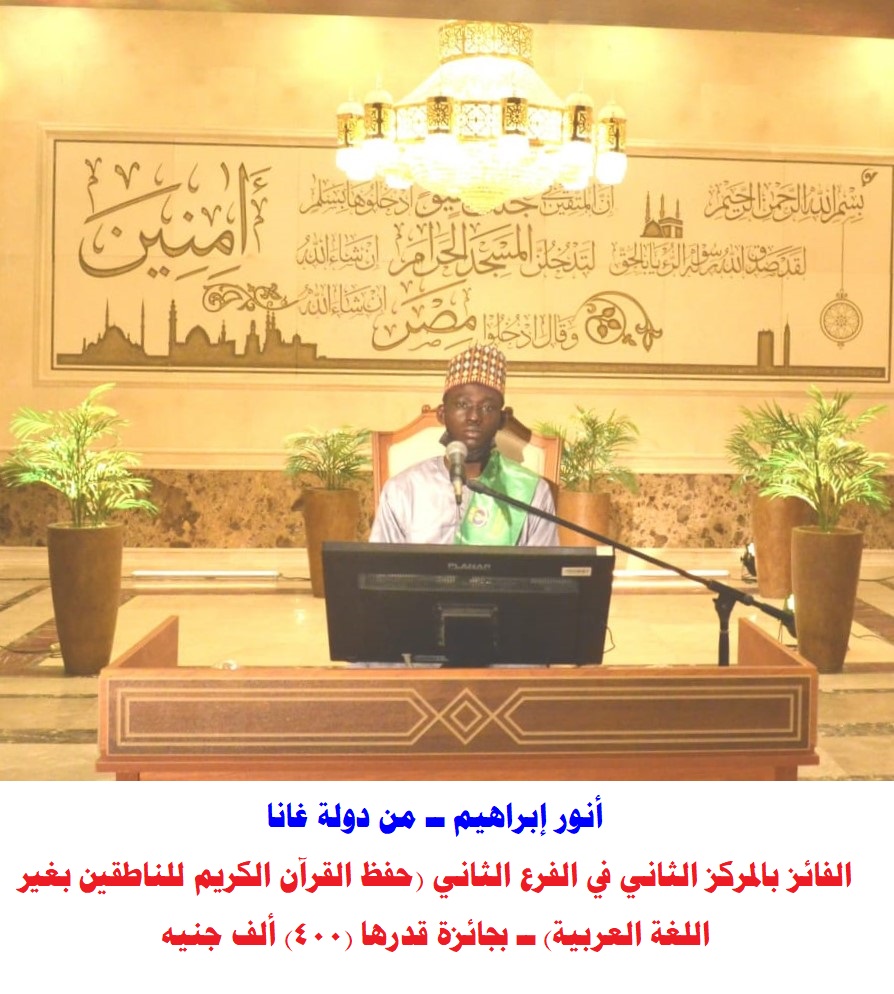 أنور إبراهيم ــ من دولة غانا ــ الفائز بالمركز الثاني في الفرع الثاني ــ بجائزة قدرها 400 ألف جنيه