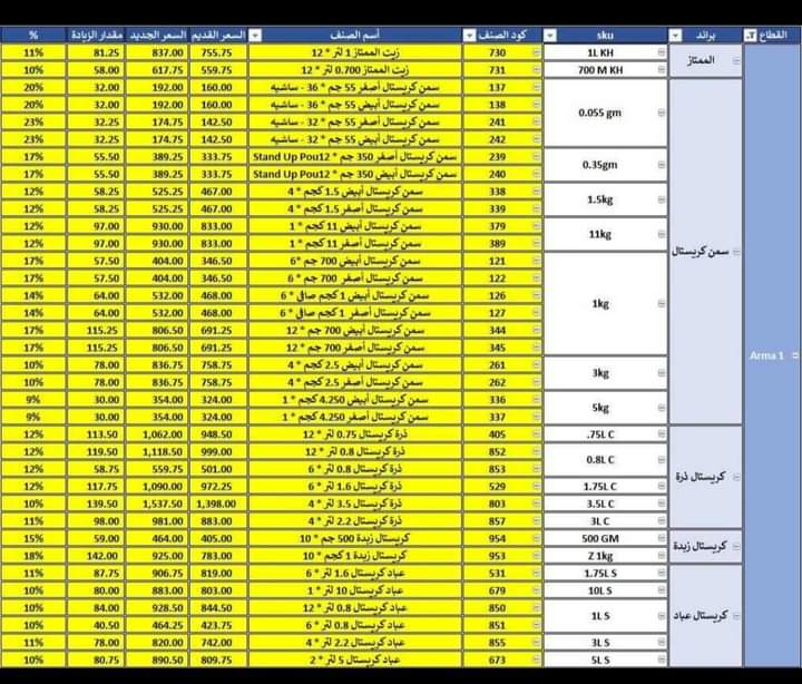وتعد هذه الزيادة الثانية في أسعار زيت وسمن وزبدة كريستال في أقل من شهرين، إذ أعلنت شركة أرما للصناعات الغذائية قائمة أسعار منتجاتها التي شملت الزيت والسمن والزبدة يوم 18 نوفمبر 2023.