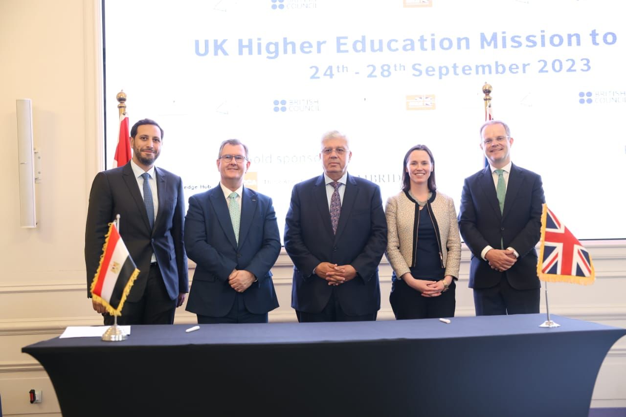 وشهد د. أيمن عاشور وزير التعليم العالي والبحث العلمي مراسم توقيع مذكرة تفاهم بين وزارة التعليم العالي والبحث العلمي (MOHESR) والكلية الملكية للجراحين بأدنبرة (RCSEd)، بحضور السفير شريف كامل سفير جمهورية مصر العربية بالمملكة المتحدة، ولفيف من رؤساء ونواب وقيادات الجامعات البريطانية في المجالات ذات الصلة، والدبلوماسيين بالسفارة المصرية بلندن، وذلك بمقر السفارة المصرية بلندن.