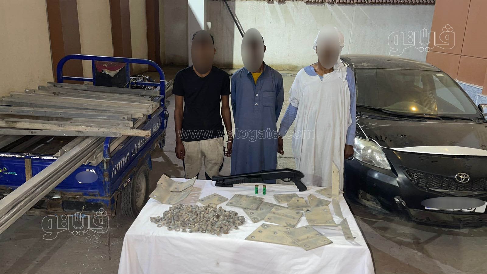 كما تم ضبط (6 أشخاص – مقيمين بدائرة مركز شرطة أبو تشت) لقيامهم بتكوين تشكيل عصابى تخصص نشاطه الإجرامى فى إرتكاب وقائع سرقة الزاويا الحديدية الخاصة بأبراج الضغط العالى وأعمدة الكهرباء، بحوزتهم (بندقية خرطوش - فرد محلى – عدد من الطلقات - 31 زاوية حديدية خاصة بأبراج كهرباء الضغط العالى وزنت 300 كيلو جرام - عامود كهرباء إنارة- عامود كهرباء جهد منخفض- الأدوات المستخدمة فـى النشاط الإجرامى) وبمواجهتهم اعترفوا بسرقة المضبوطات، كما أرشدوا عن سيارة ودراجتين ناريتين "تروسيكل" يستخدمون فـى عملية نقل وتحميل المسروقات والسلاحين الناريين بقصد الدفاع عن نشاطهم الإجرامى.