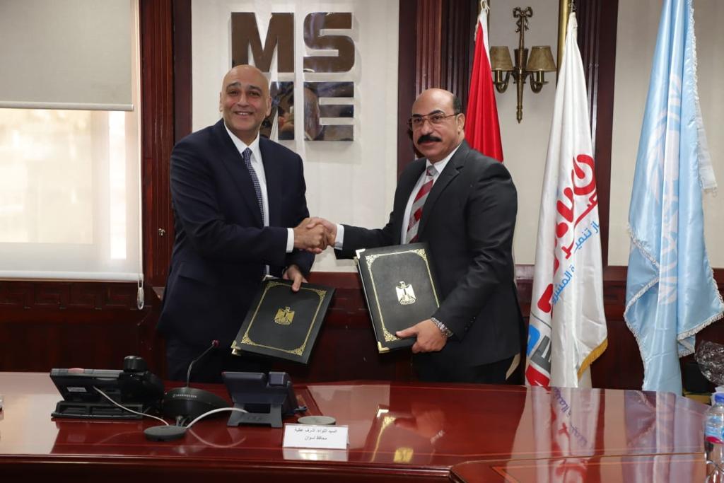 وقام كل من باسل رحمي الرئيس التنفيذي لجهاز تنمية المشروعات المتوسطة والصغيرة ومتناهية الصغر واللواء أشرف عطية محافظ أسوان بتوقيع العقد الأول بقيمة 2 مليون جنيه وذلك بحضور روحي أفغاني نائب الممثل المقيم لبرنامج الأمم المتحدة الإنمائي ولفيف من مسئولي الجهاز والمحافظة وبرنامج الأمم المتحدة الإنمائي. ويهدف العقد لترميم وصيانة الوحدة الصحية في قرية كركر بمركز أسوان لتوفير الخدمات الصحية المناسبة للمواطنين واللاجئين من الأشقاء السودانيين المقيمين في المنطقة وسيتم تنفيذ المشروع باستخدام العمالة الكثيفة من المنطقة حيث من المتوقع أن يوفر حوالي 2000 يومية عمل خلال فترة التنفيذ.