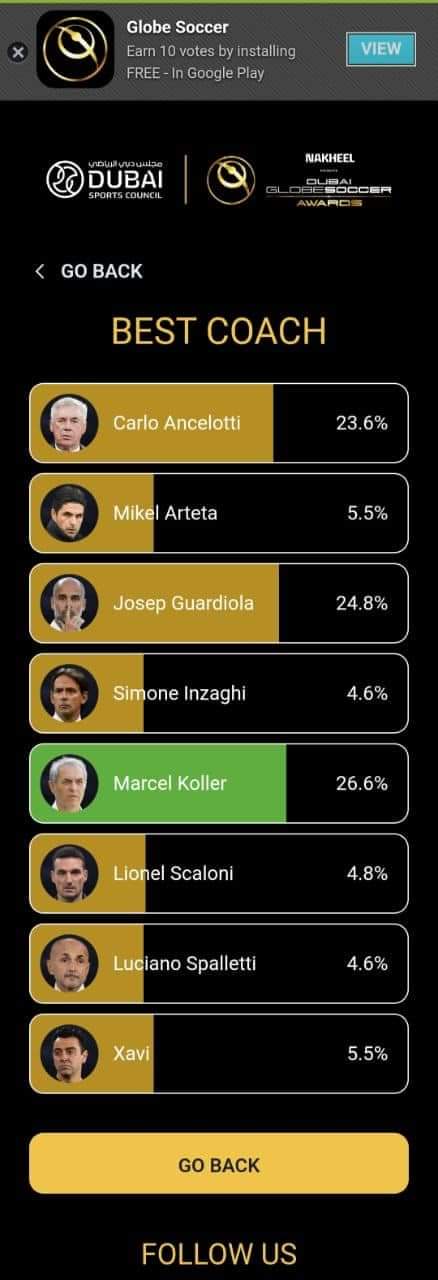 كولر أفضل مدرب في استفتاء جلوب سوكر بعد إغلاق التصويت