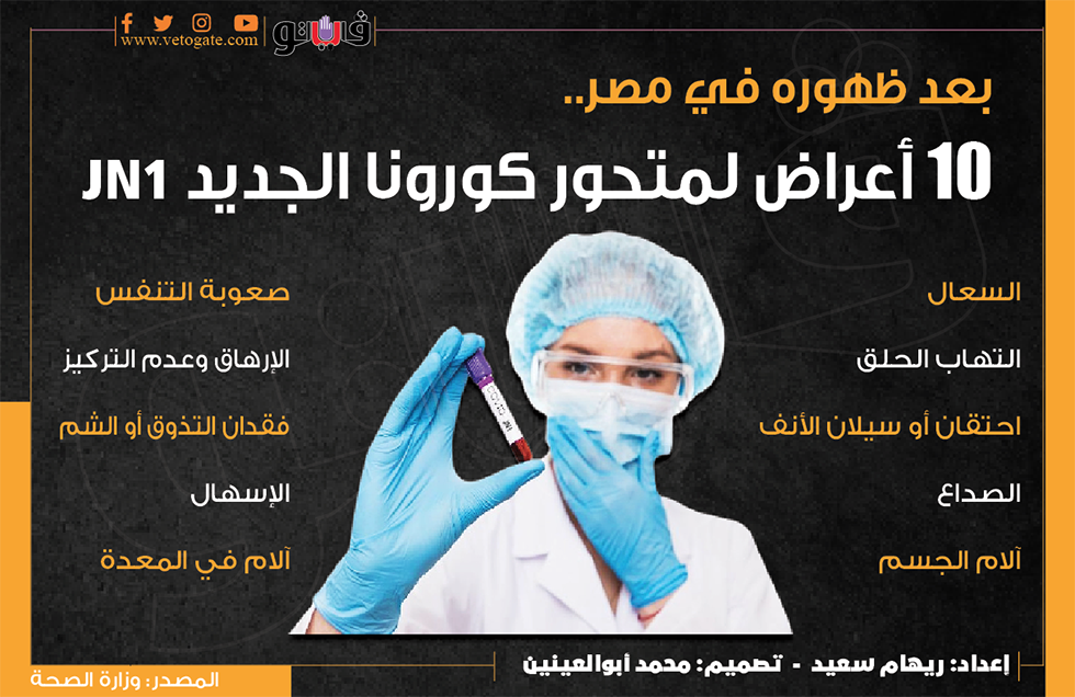 بعد ظهوره في مصر.. 10 أعراض لمتحور كورونا الجديد JN1 (إنفوجراف) الجمعة 29/ديسمبر/2023 - 08:00 م 12/29/2023 8:00:58 PM متحور فيروس كورونا، فيتو ريهام سعيد شارك طباعة 18 حجم الخط شارك طباعة أعراض متحور كورونا الجديد أعراض متحور كورونا أعراض المتحور الجديد تحور كورونا كورونا الجديد متحور كورونا الجديد وزارة الصحة