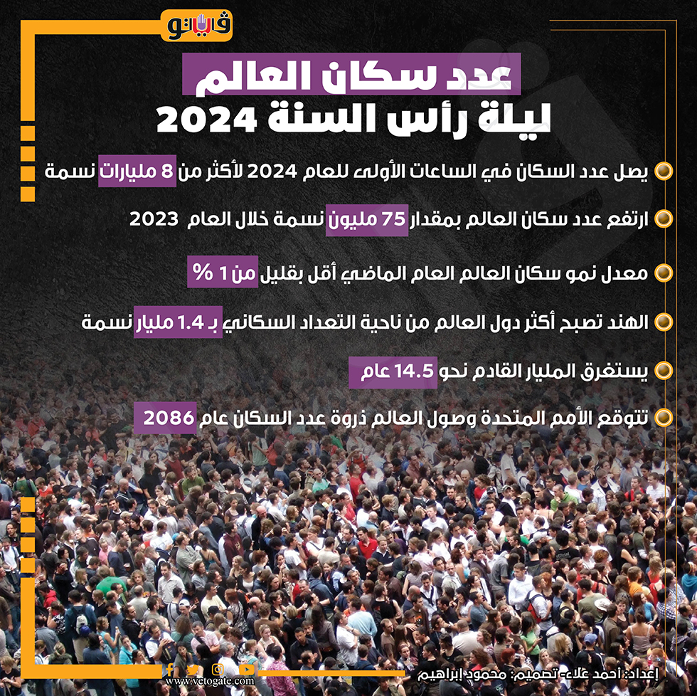 عدد سكان العالم ليلة رأس السنة 2024 (إنفوجراف) السبت 30/ديسمبر/2023 - 08:40 م 12/30/2023 8:40:10 PM تعداد سكان العالم، فيتو احمد علاء شارك طباعة 18 حجم الخط شارك طباعة عدد سكان العالم ليلة رأس السنة 2024 عدد سكان العالم الهند الأمم المتحدة ليلة رأس السنة 2024 تعداد سكان العالم تعداد سكان العالم 2024