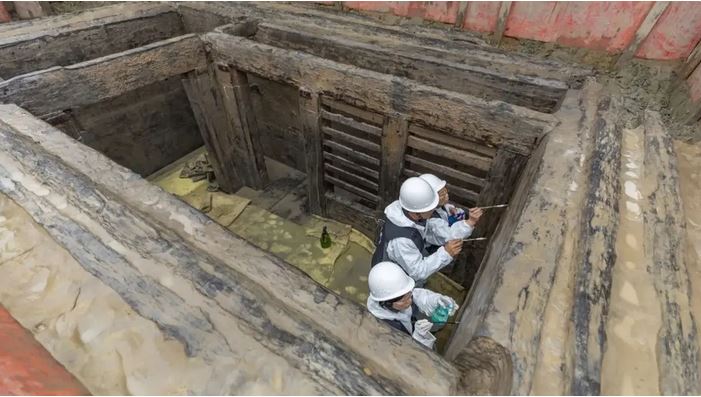 وتم اكتشاف القطع الخشبية والعديد من القطع الأثرية الأخرى في وقت سابق من هذا العام، في مقبرة في منطقة وولونج، على بعد حوالي 870 ميلا (1400 كيلومتر) جنوب غرب بكين.