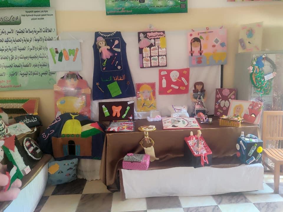 وتضمن المعرض المشغولات الخاصة بالموضوعات المقررة لكل مرحلة دراسية وتشمل النظافة الشخصية للمرحلة الابتدائية، القضية الفلسطينية للمرحلة الإعدادية، التراث الشعبي والبدوي للمرحلة الثانوية، كما عكس جميع الموضوعات بمشغولاتها المنهجية محتوى مناهج الاقتصاد المنزلي للمراحل المختلفة، ومستوى المهارة والأداء المتميز للطالبات.