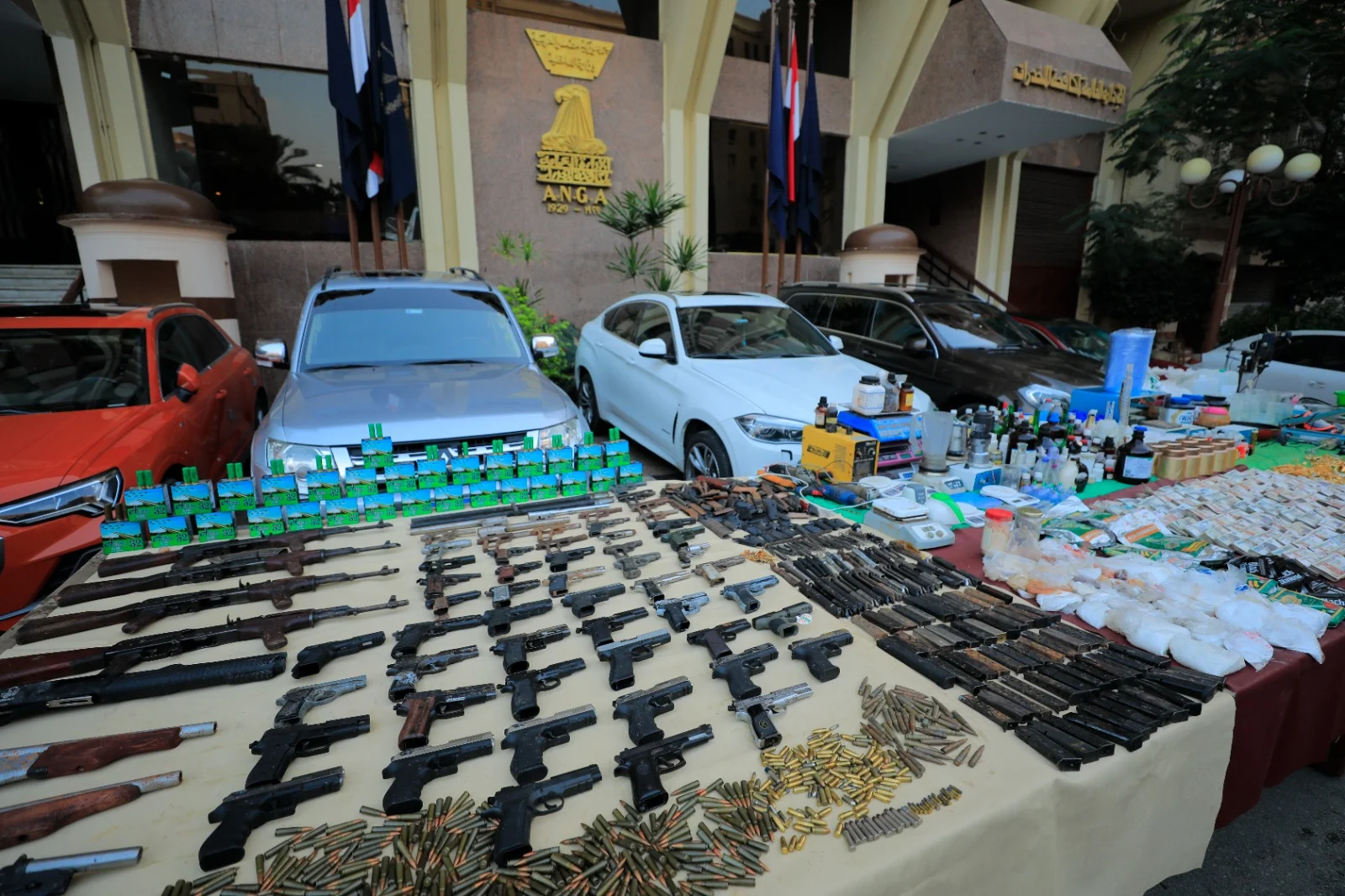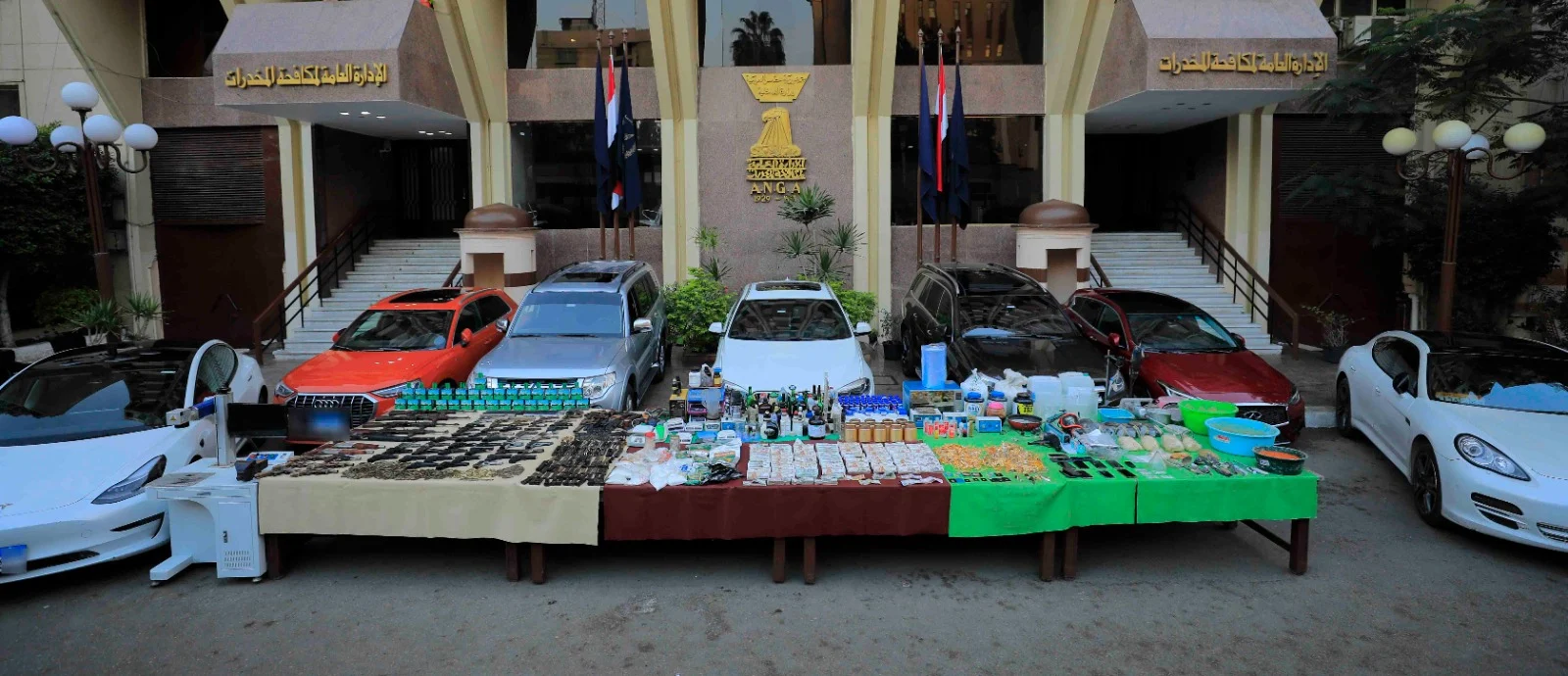 وعقب تقنين الإجراءات تم إستهدافهم وأمكن ضبط 7 أشخاص "عناصر التشكيل المتواجدين بالبلاد" بنطاق محافظتى القاهرة والجيزة وبحوزتهم (كمية لمخدر الحشيش الإصطناعى "البودر" وزنت 46 كيلو جرام – كمية لمخدر الآيس "الشابو" وزنت 2,500 كيلو جرام – كمية من المواد الخام المستخدمة فى تصنيع المواد المخدرة – عدد من الأدوات المستخدمة فى تصنيع المواد المخدرة.