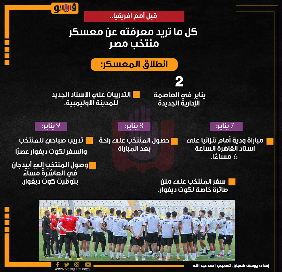 قبل أمم إفريقيا.. كل ما تريد معرفته عن معسكر منتخب مصر (انفوجراف) الأحد 31/ديسمبر/2023 - 10:48 ص 12/31/2023 10:48:06 AM منتخب مصر يستعد لبطولة أمم أفريقيا، فيتو يوسف شعبان شارك طباعة 18 حجم الخط شارك طباعة منتخب مصر أخبار منتخب مصر الأول لكرة القدم محمد غرابة بطولة أمم أفريقيا تفاصيل معسكر منتخب مصر