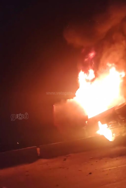 حريق يلتهم سيارة تريلا على طريق المنصورة جمصة (صور)