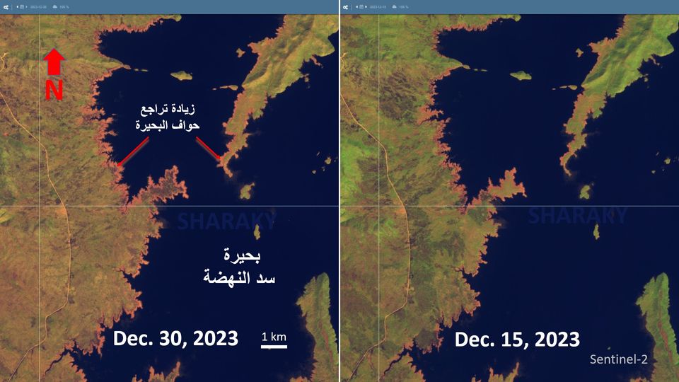 واضاف: “أصبح إجمالى المخزون حاليا حوالى 40 مليار م3، حيث تأخرت إثيوبيا في غلق إحدى البوابتين حتى اليوم 30 ديسمبر 2023، ومن المتوقع غلقها قريبًا، سوف يستمر انخفاض مخزون بحيرة سد النهضة حتى بداية موسم الأمطار فى يوليو القادم، وفى جميع الأحوال نقص البحيرة سوف يتم تعويضه من الأمطار القادمة”.