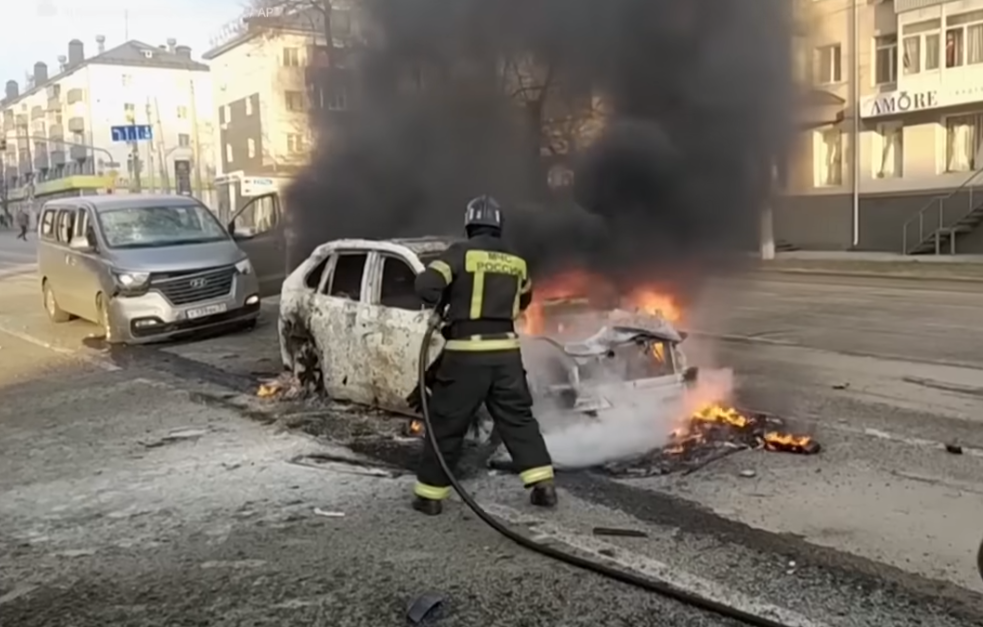 وظهر في الصور، التي نشرتها السلطات الروسية السيارات وهي تشتعل فيها النيران ونوافذ البنايات المكسورة، حيث طالب حاكم مدينة بيلغورود، فياتشيسلاف جلادكوف، السكان أن يتوجهوا للمخابئ عند سماع صوت صفارات الإنذار.