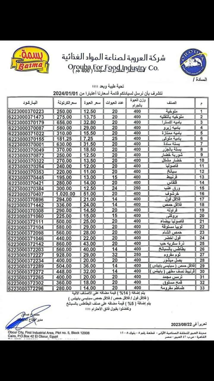 وبلغ سعر بامية اكسترا بسمة وزن 400 جرام نحو 32.80 جنيه للعبوة.