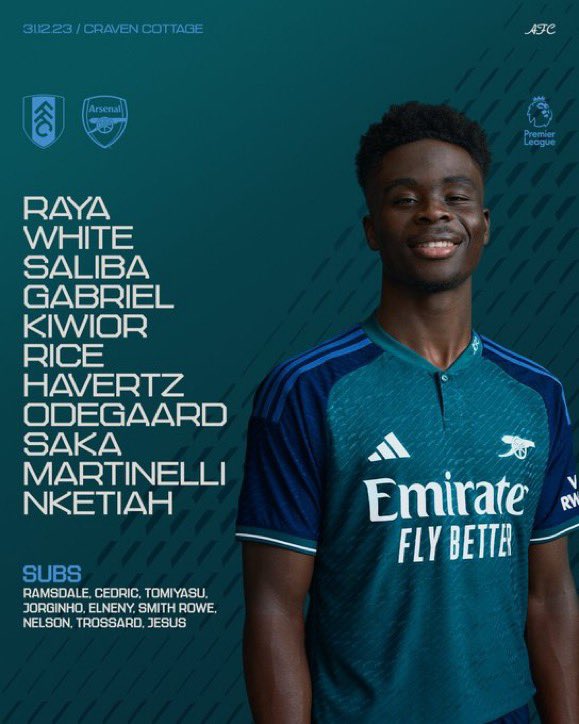 الدوري الإنجليزي، أعلن ميكيل أرتيتا مدرب أرسنال عن تشكيل فريقه أمام فولهام في الجولة 20 من الدوري الإنجليزي الممتاز.
