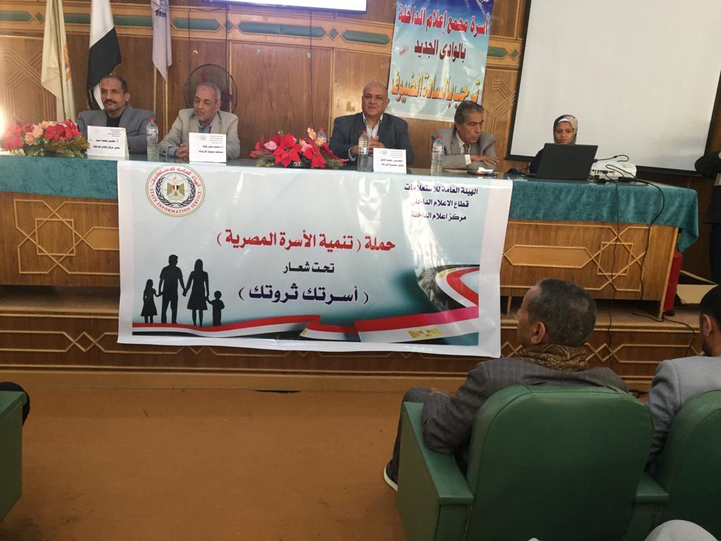 بدأ مركز اعلام الداخلة بمحافظة الوادي الجديد، التابع للهيئة العامة للاستعلامات، أولى فاعليات الحملة الإعلامية لتنمية الأسرة المصرية التي أطلقها قطاع الاعلام الداخلي بالهيئة العامة للاستعلامات برعاية وتوجيه رئيس قطاع الاعلام الداخلي الدكتور أحمد يحيى، تحت شعار " أسرتك ثروتك"، والتي تهدف الى تحقيق التغيير الاجتماعي والاقتصادي المنشود من خلال التوعية والتثقيف بقضايا السكان والتنمية.