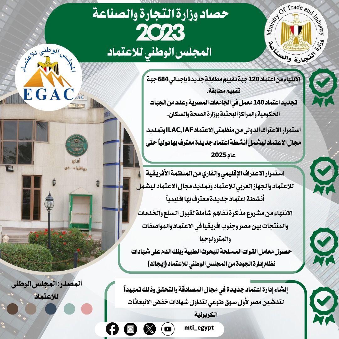 المجلس الوطني للاعتماد: الانتهاء من اعتماد 120 جهة تقييم مطابقة جديدة بإجمالي 684 جهة تقييم مطابقة