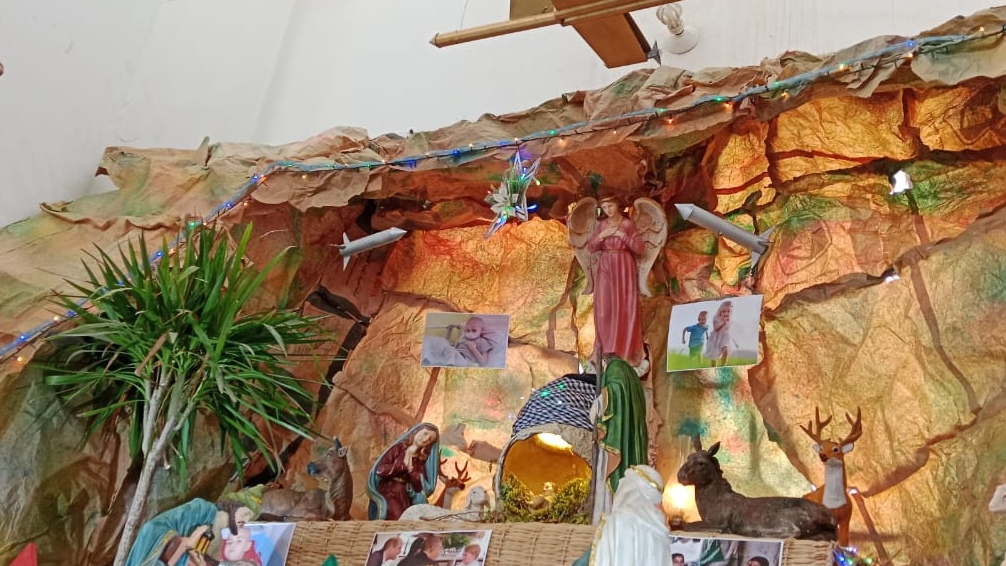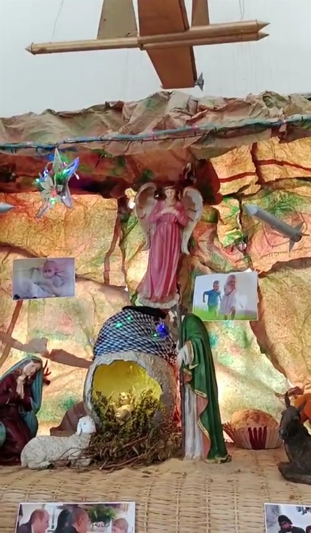 تضامنًا مع فلسطين، مغارة الميلاد تحتضن صور أطفال غزة في كنيسة القيامة بالمنيا الجديدة