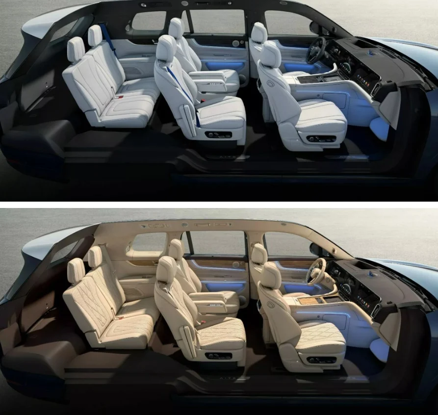 من الداخل تأتي بثلاث شاشات على لوحة القيادة، واحدة 12.3 إنش للوحة العدادات، والثانية 15.6 إنش للنظام الترفيهي المركزي، والثالثة 16 إنش أمام الراكب الأمامي، بالإضافة لشاشة ضخمة 75 إنش على الزجاج الأمامي للملاحة، بالإضافة لـ شاشات تابليت متعددة للمقاعد الخلفية.