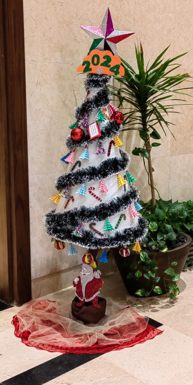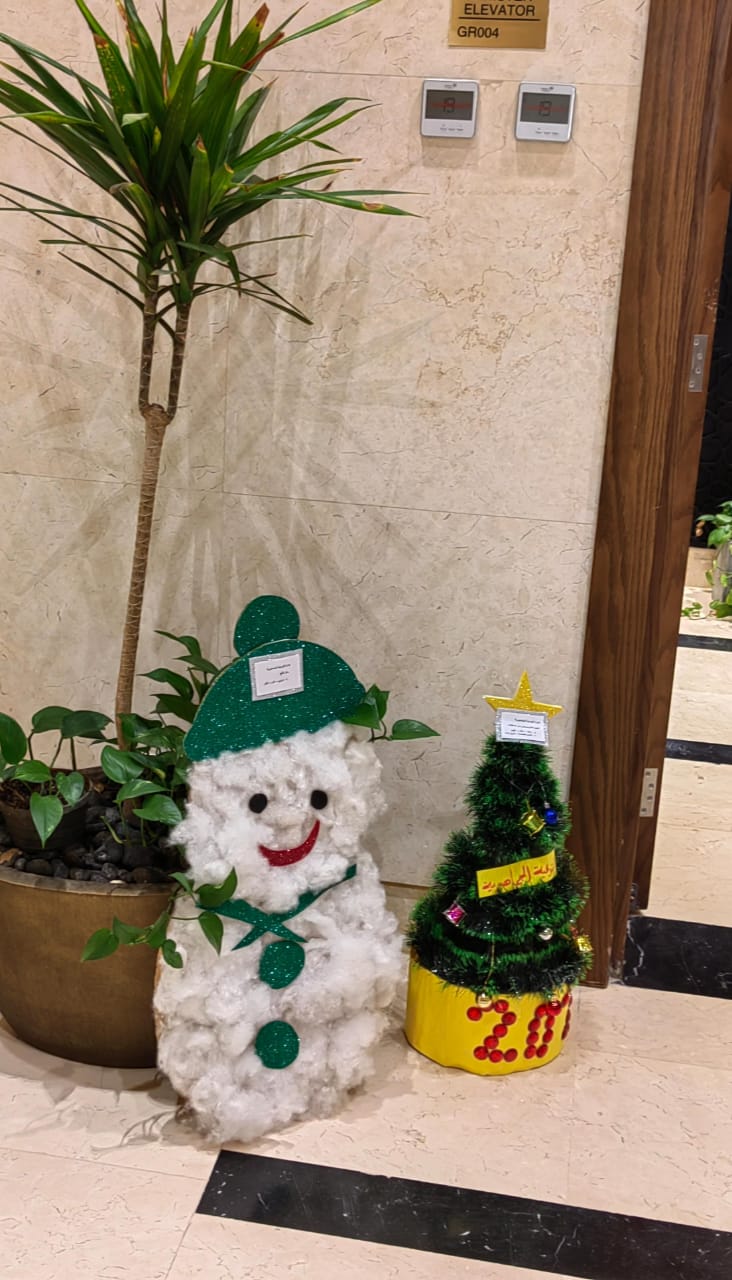"شجرة الكريسماس" قدمها فريق التوعية بمناسبة أعياد رأس السنة من مكونات صديقة للبيئة من المخلفات المنزلية من قماش، والكرتون، والفوم، وماسورة، وبرطمان بلاستيك، وذلك لتحقيق منظر جمالي في المنزل وتوفير التكلفة المرتفعة لأشجار الكريسماس.