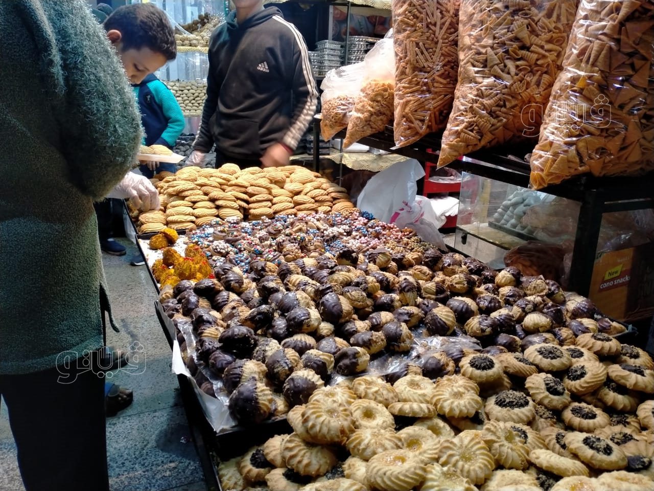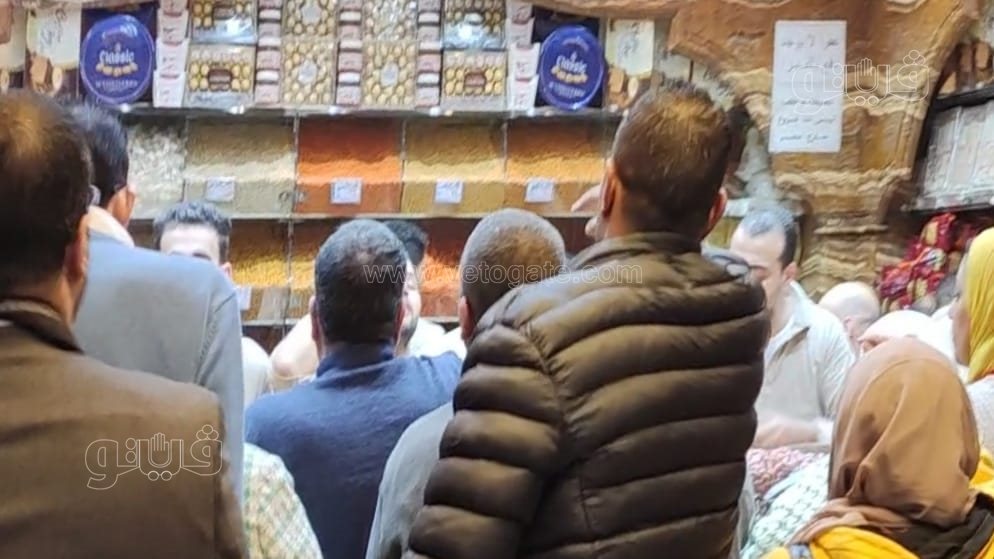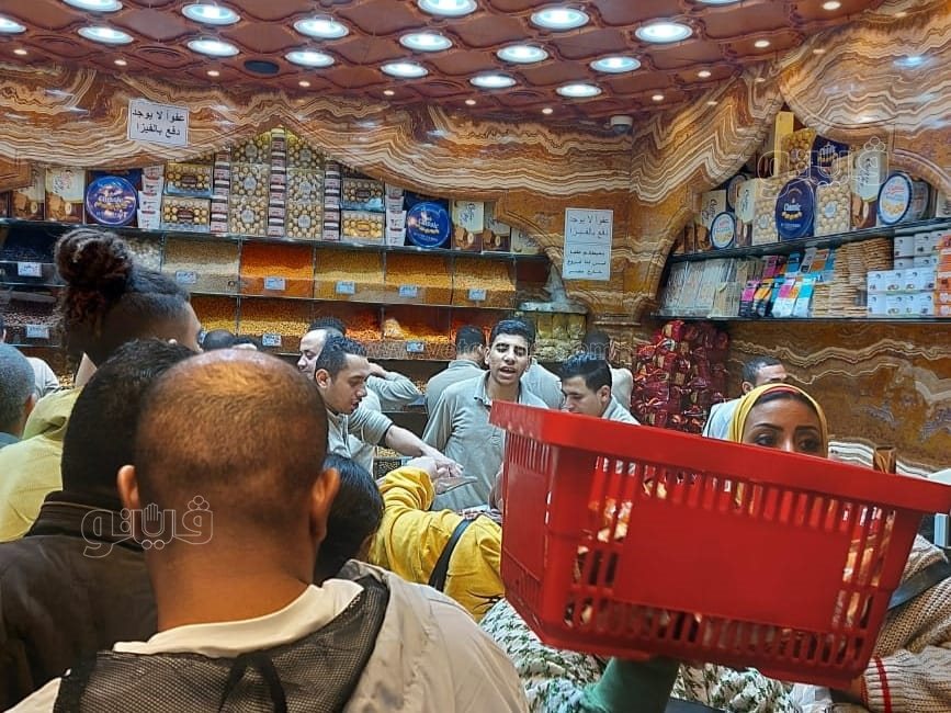 زحام على محال التسالي والكشري والجزارة بشبرا مصر في ليلة رأس السنة (صور)