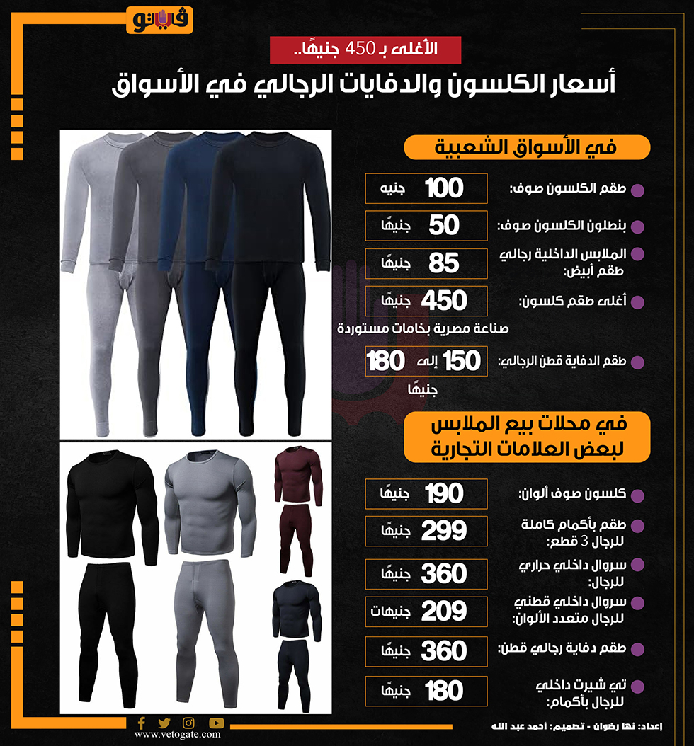الأغلى بـ 450 جنيهًا.. أسعار الكلسون والدفايات الرجالي في الأسواق (انفوجراف) الإثنين 01/يناير/2024 - 03:43 م 1/1/2024 3:43:10 PM سعر الكلسون 2024 في الأسواق، فيتو نها رضوان شارك طباعة 18 حجم الخط شارك طباعة أسعار الكالسون الملابس الداخلية العلامات التجارية سعر الملابس سعر الملابس الداخلية سعر الكالسون صناعة مصرية سعر الكلسون أسعار الكلسون
