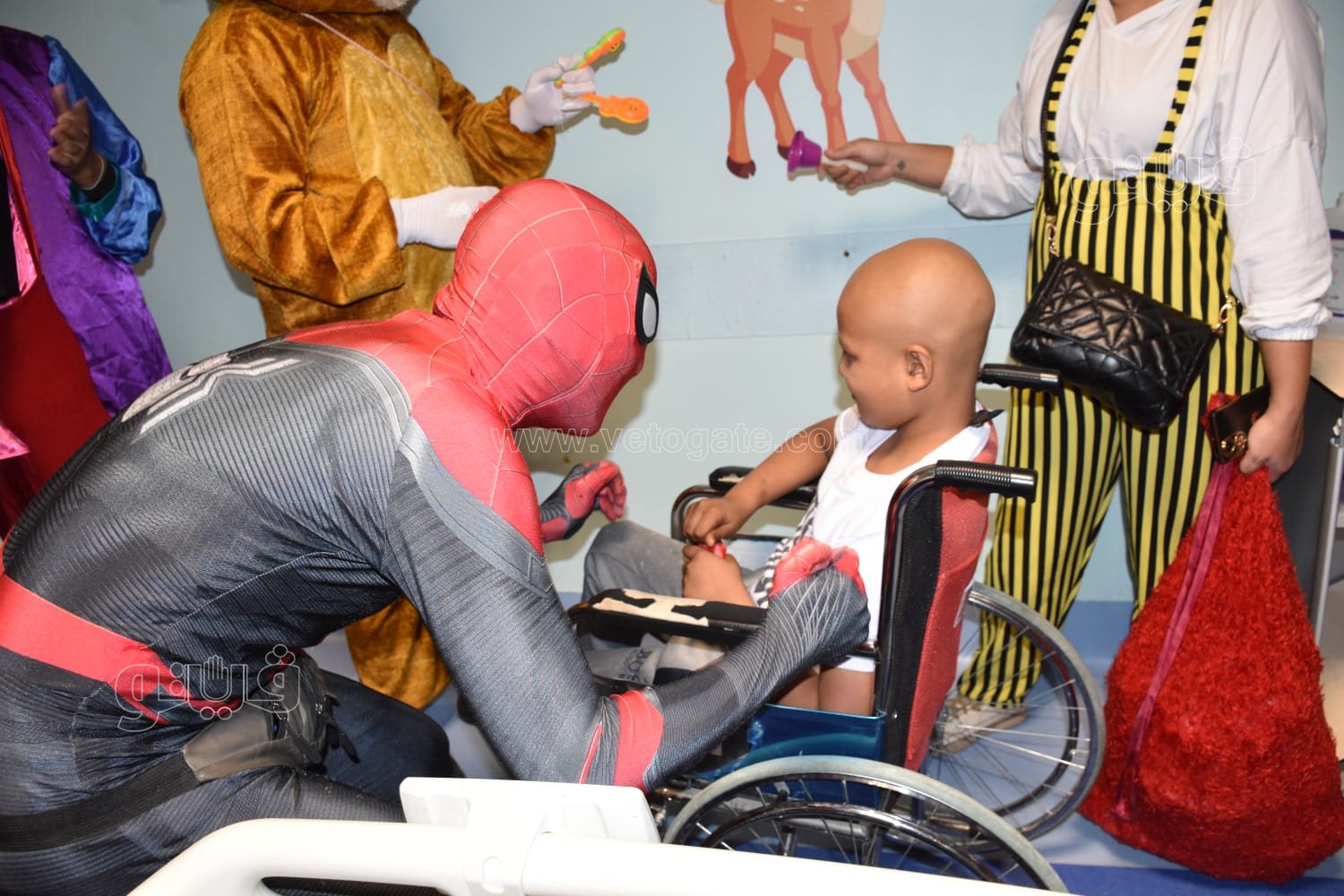 حرص شباب أقصري على ارتداء شخصية سبايدرمان الكارتونية والاحتفال مع أطفال الصعيد مرضى السرطان، فى مستشفى علاج الأورام بالمجان، بتوزيع الهدايا عليهم فى جو من الفرحة والسعادة.