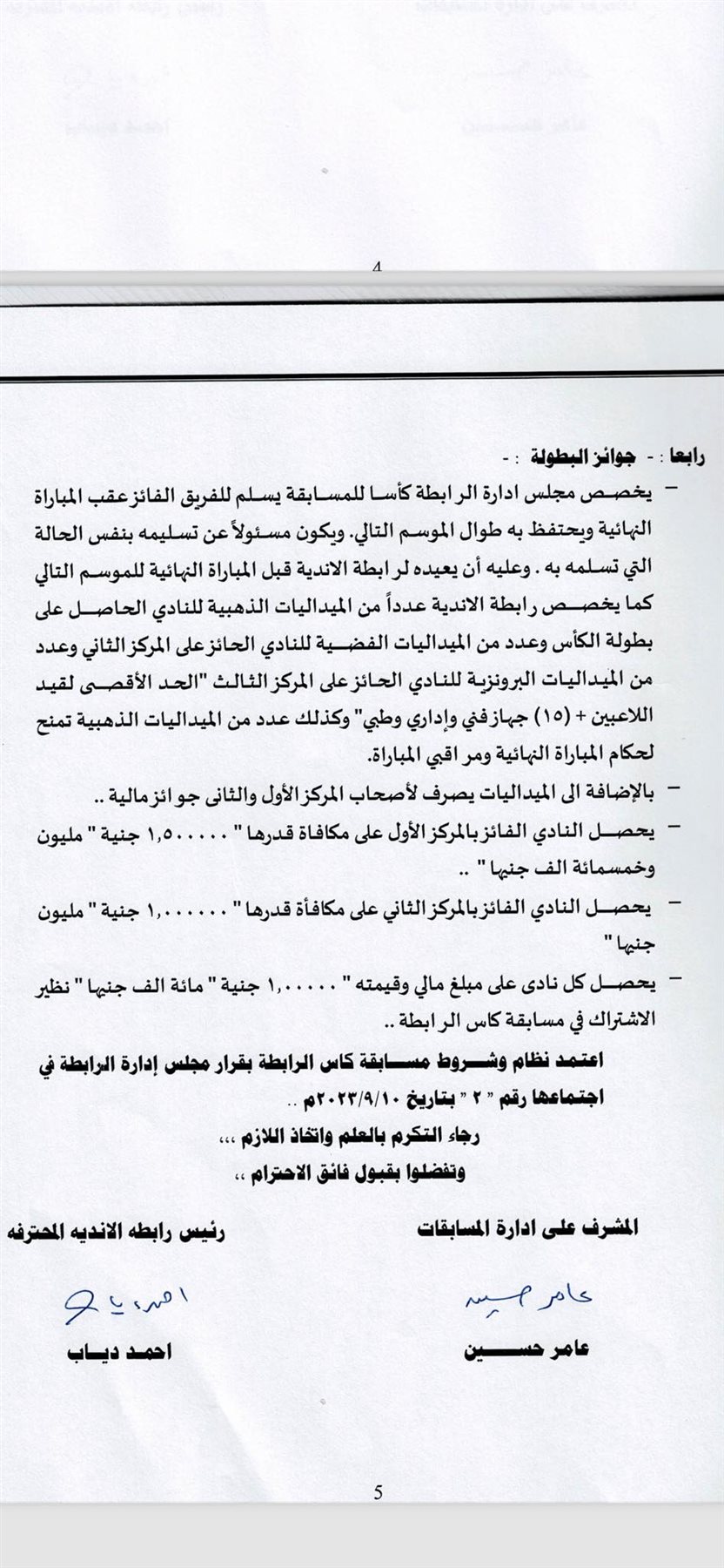 ثم إيه عقوبة غرامة المليون جنيه قيمة المشاركة في دوري النيل وحدود علمي أنه لا يوجد ناد حصل على مليم من هذه الأموال رغم أنها حق أصيل ليس له علاقة بكأس الرابطة من الأساس!! وبالنسبة للأندية الموسم الماضي حصلت على حقوقها؟! …. طب الرابطة مش كيان عظيم لا بد أن يكون لها حساب ختامي حتى تعرف الأندية ما لها وما عليها أم أنه سر من الأسرار.