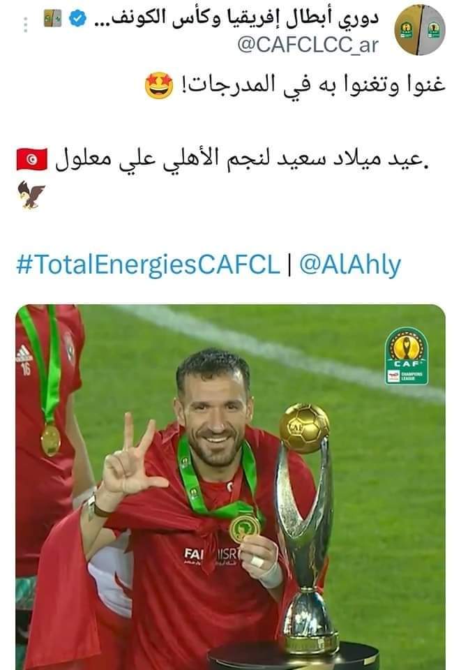 حساب دوري أبطال أفريقيا يحتفل بميلاد علي معلول لاعب الأهلي