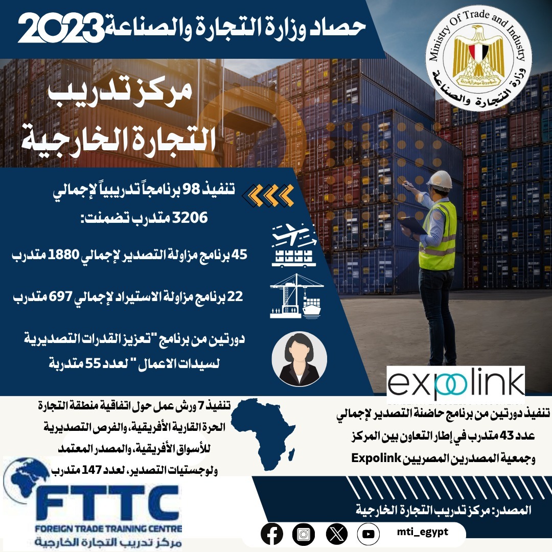 ورصد حصاد التجارة الخارجية 2023 أهم الإنجازات والأنشطة التى قام مركز تدريب التجارة الخارجية