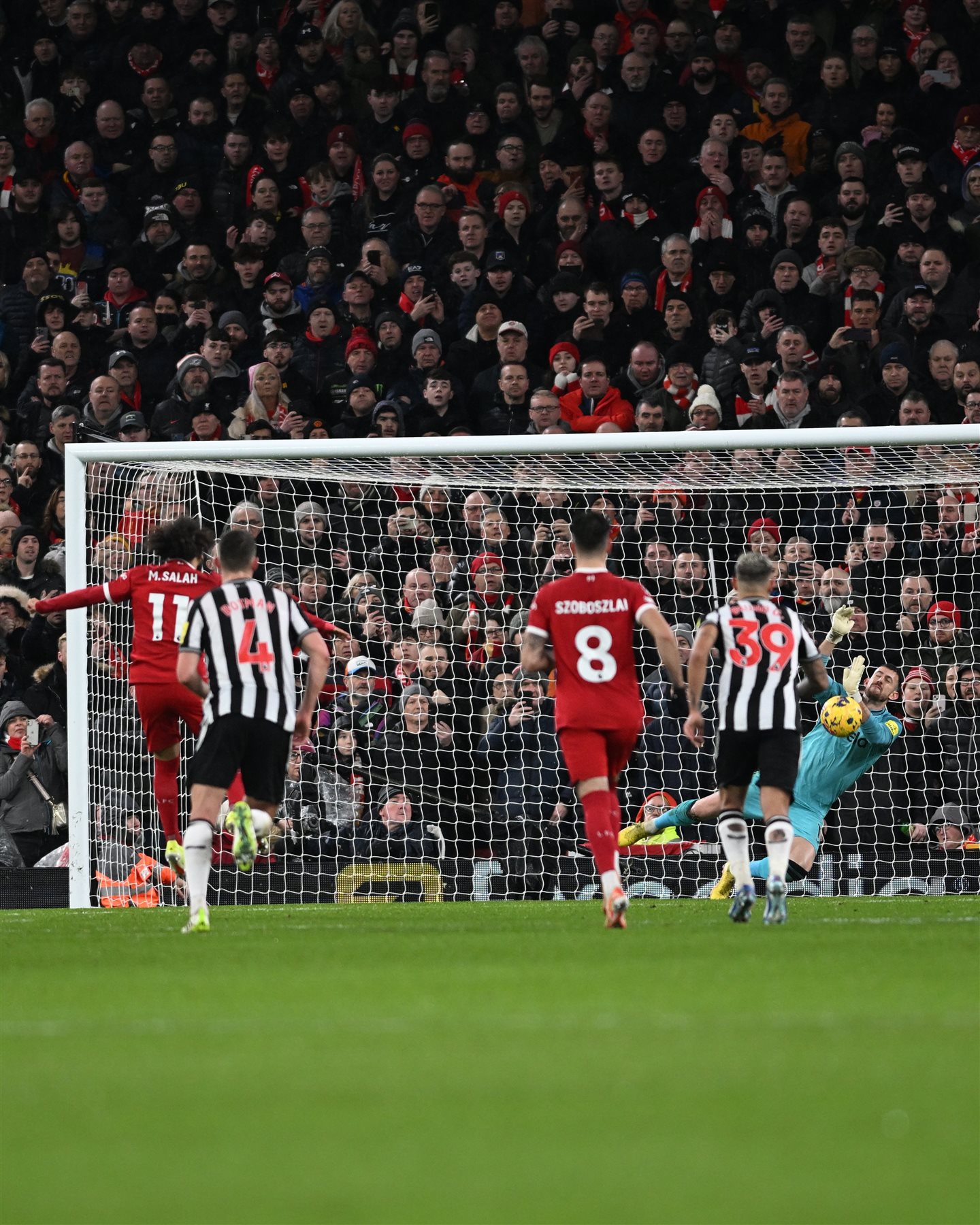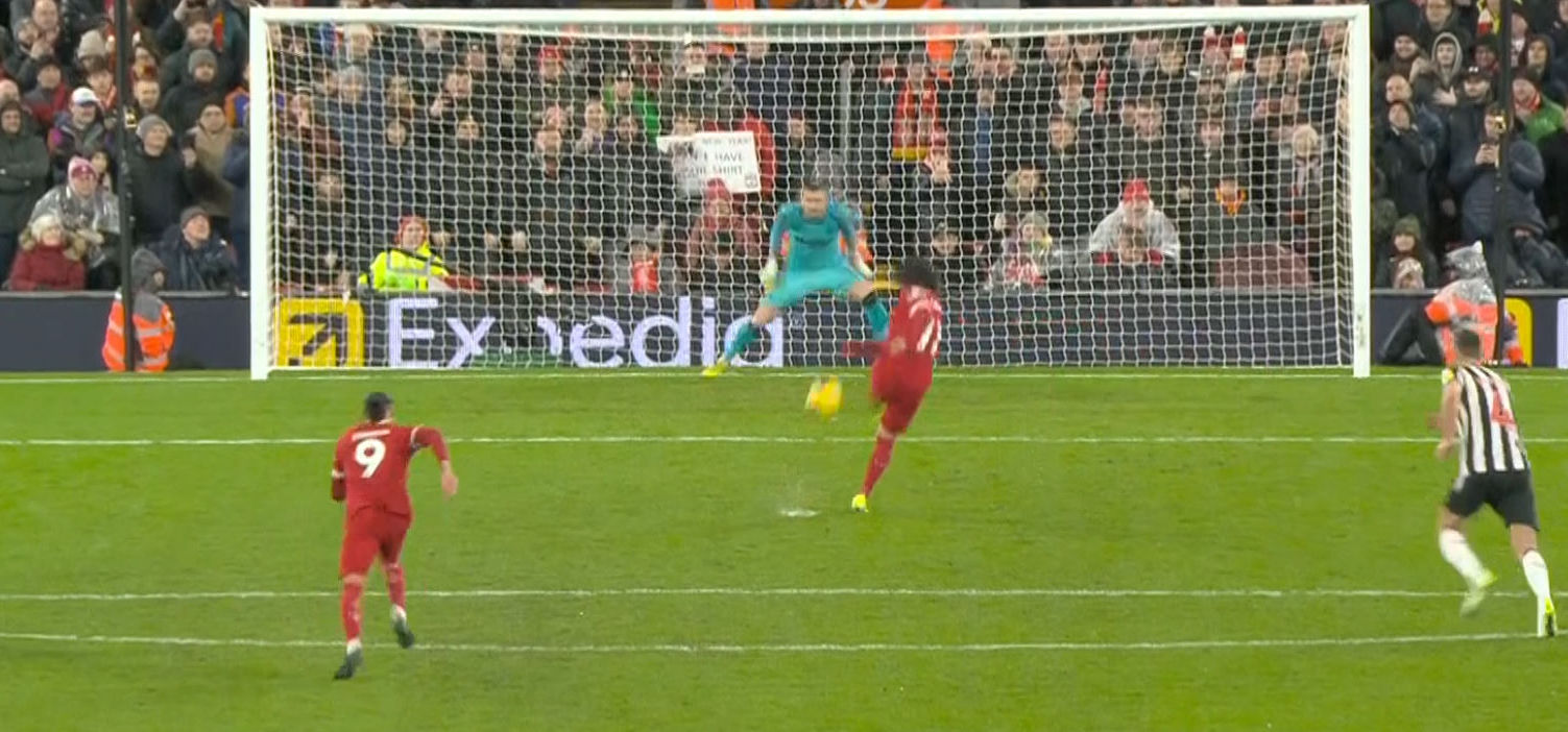 وأهدر محمد صلاح لاعب فريق ليفربول ركلة جزاء أمام نيوكاسل في الدقيقة 22 بعد أن تصدى لها الحارس ببراعة شديدة.