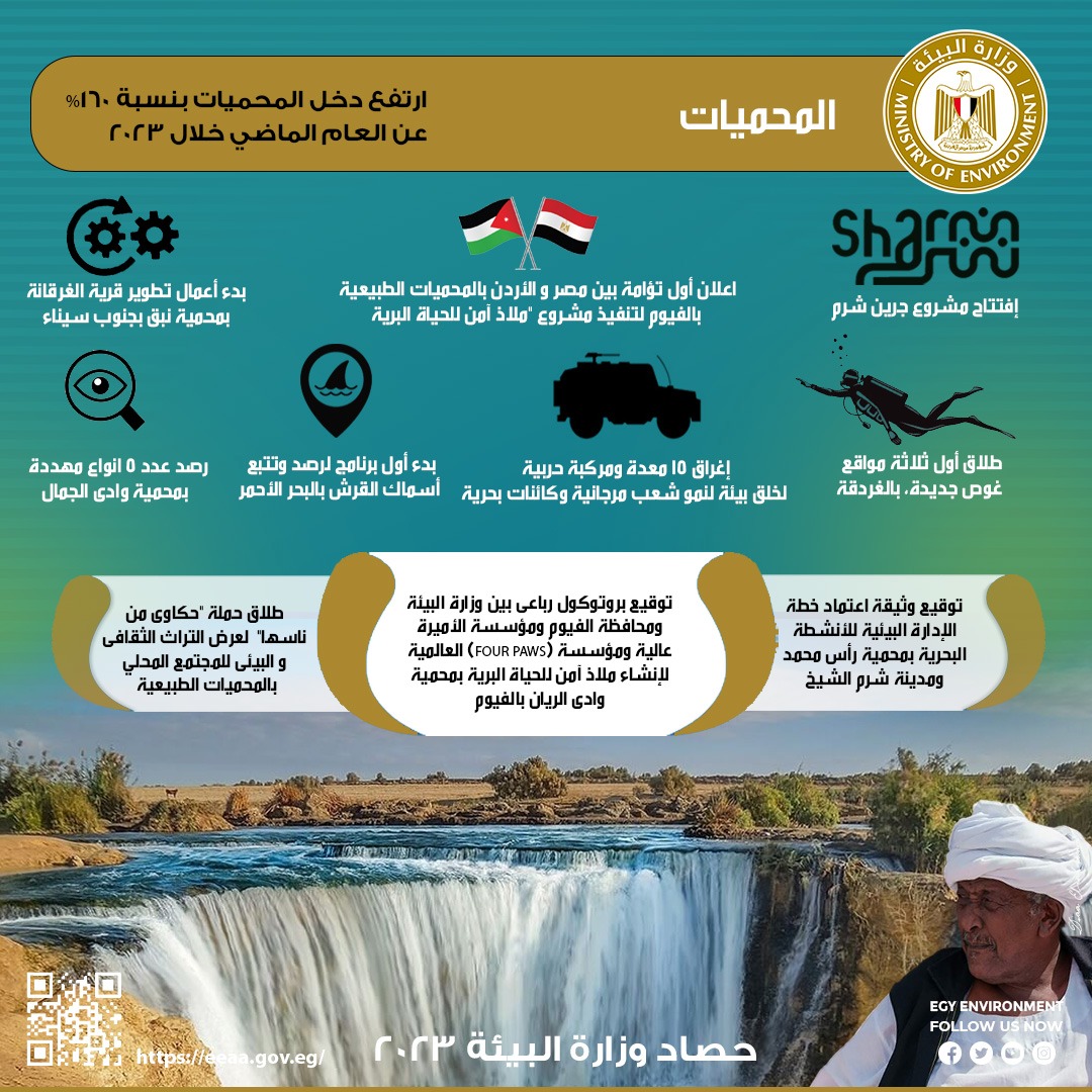 حصاد قطاع المحميات الطبيعية لعام 2023.. ارتفاع الدخل بنسبة 160%.. دعم البنية التحتية والسياحة.. وحماية التنوع البيولوجي لتحفيز الاستثمار