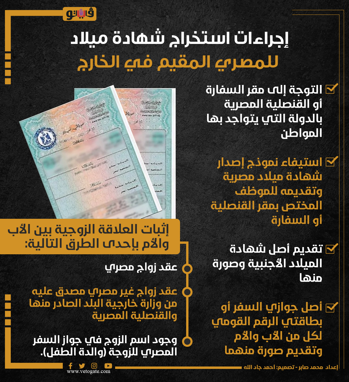 إجراءات استخراج شهادة ميلاد للمصري المقيم في الخارج (إنفوجراف)