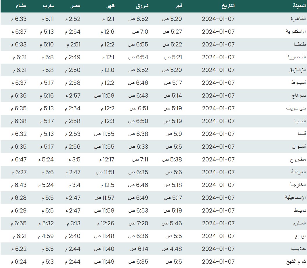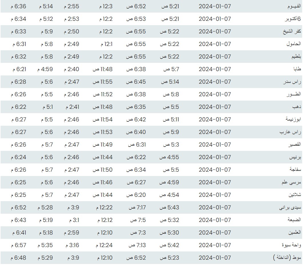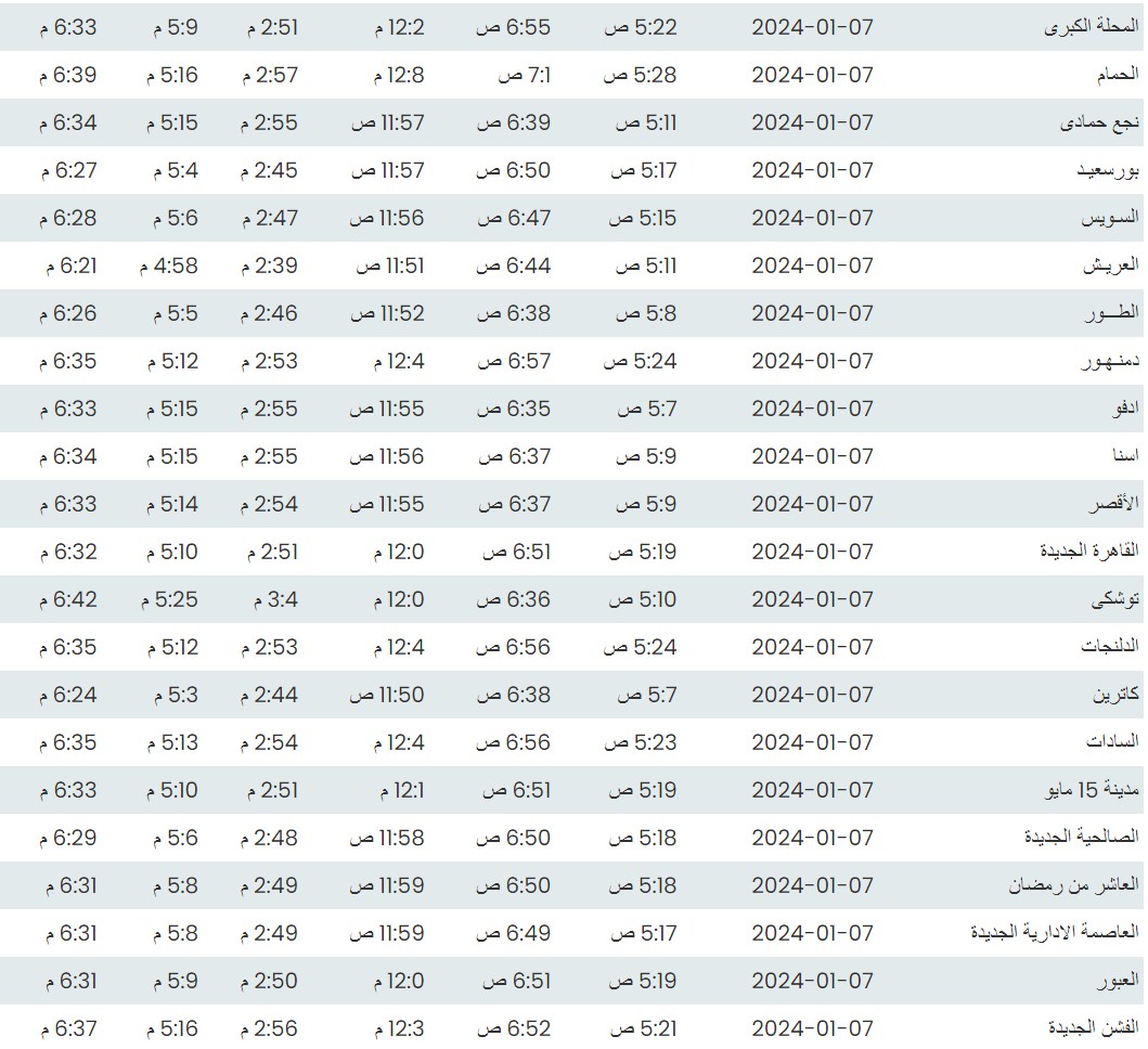 وفيما يلي مواقيت الصلاة، لعدد من مدن ومحافظات الجمهورية من واقع بيانات الهيئة العامة للمساحة