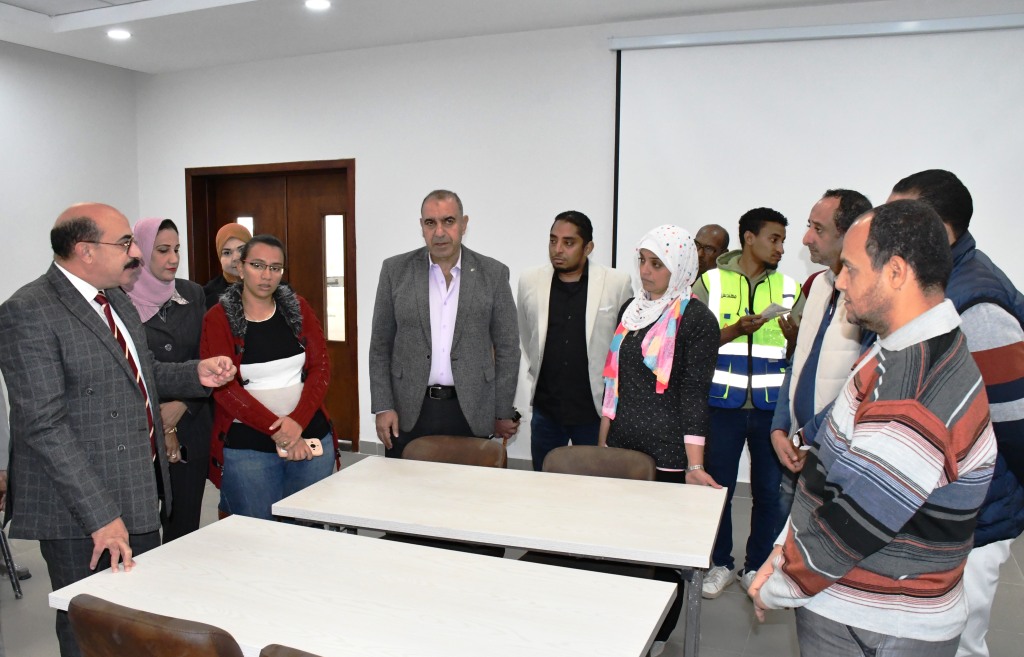 وخلال الجولة التفقدية وجه اللواء أشرف عطية إلى ضرورة مراعاة التناسق فى الألوان واللوحات التعريفية والحس الفني لمختلف المكونات والأقسام داخل المكتبة حتى يتسنى الظهور بالشكل النموذجى الراقى داخل الـ 3 أدوار، ولاسيما أنها تضم قاعة إجتماعات كبرى متعددة الأغراض، وقاعات سمنار للتدريب وملحقاتها، وقاعة كمبيوتر، وكذا مركز الإتصالات والمعلومات، وأيضًا المكتبات التى ستضم أحدث الإصدارات لمختلف الأعمار السنية، فضلًا عن المسرح والسينما، والغرف الخدمية والأرشيف، علاوة على كافتيريا، ودورات المياه، واللاندسكيب، والبدروم، وكاميرات داخلية وخارجية، وتكييف مركزى.