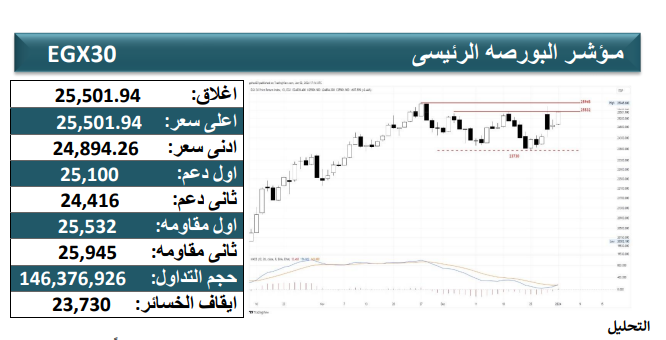 التحليل الفني لمؤشرات البورصة المصرية اليوم الأربعاء 3-1-2024
