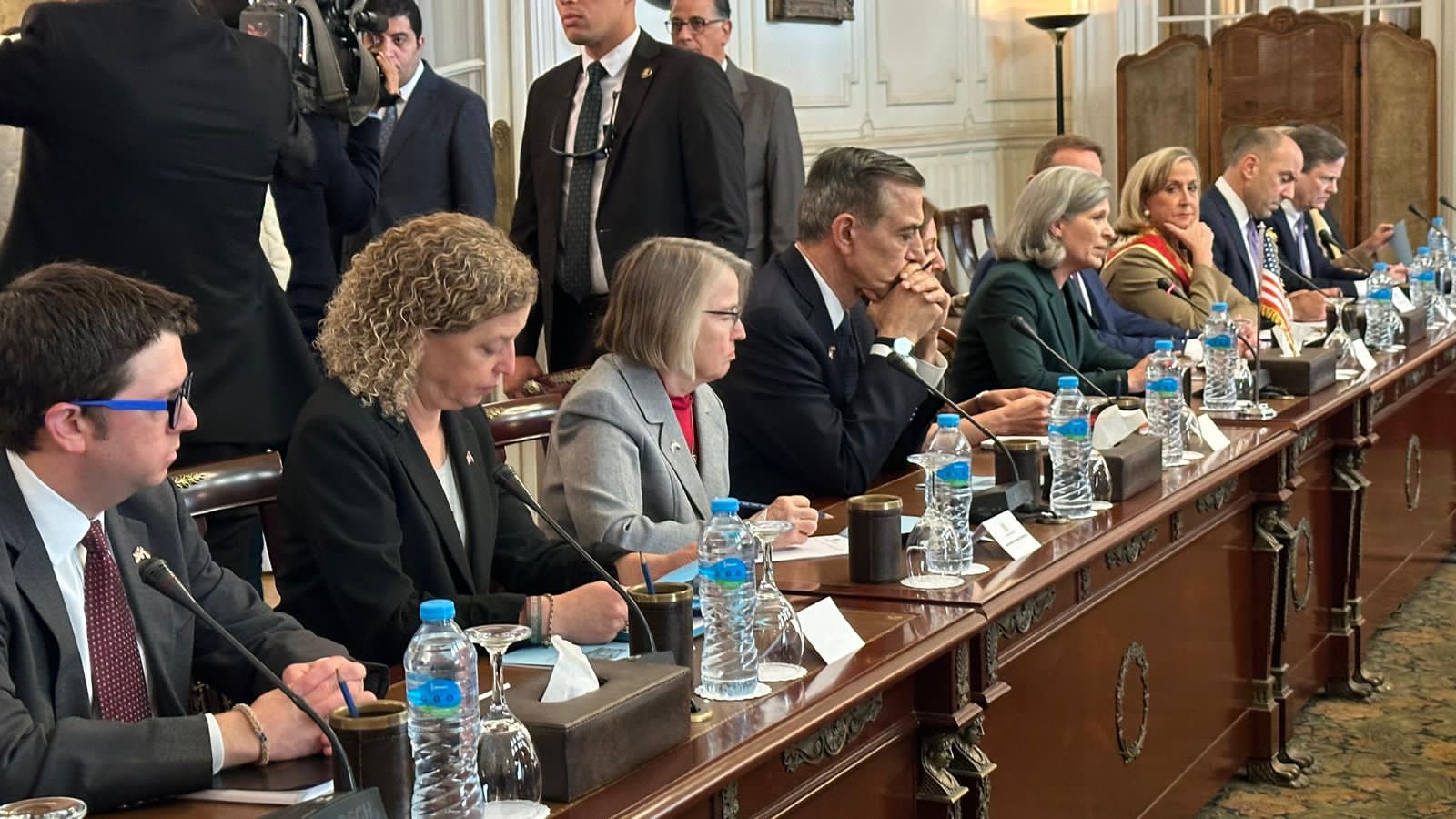 ومن جانبهم، أكد أعضاء وفد مجلسى الشيوخ والنواب الأمريكيين على أهمية العلاقات الثنائية والشراكة الاستراتيجية بين البلدين، مبرزين حرصهم على التشاور والتعاون مع مصر حيال القضايا الدولية والإقليمية، مؤكدين علي تقديرهم الكامل للجهود التي تضطلع بها مصر لتسهيل دخول المساعدات الإنسانية الي قطاع غزة ودورها فى تأمين خروج الرعايا الاجانب من القطاع وتسهيل صفقات الإفراج عن الاسرى.