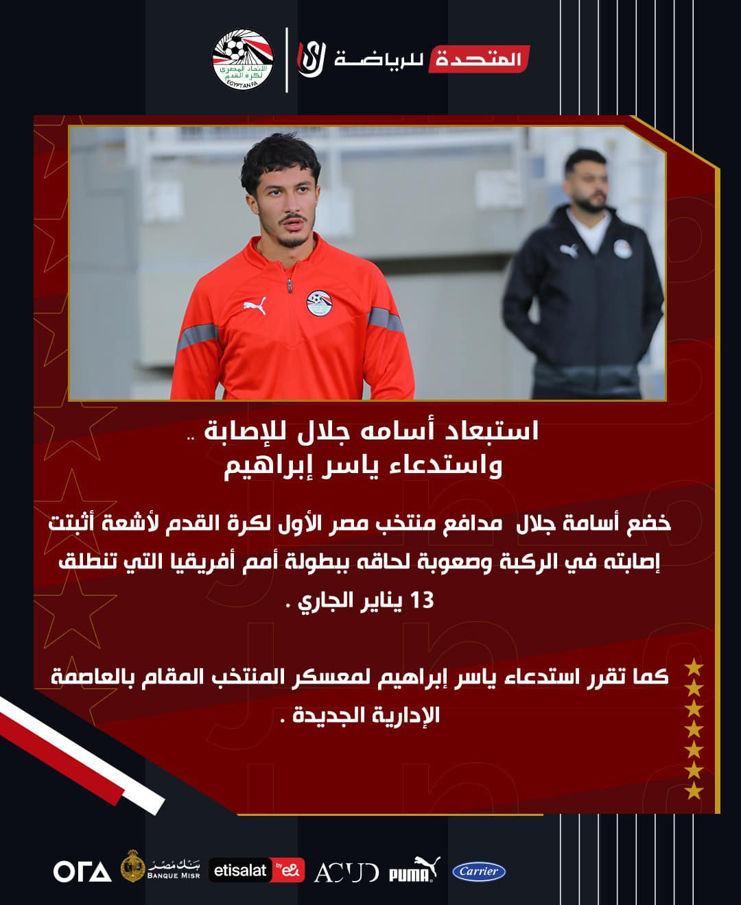 استبعاد أسامة جلال من المنتخب للإصابة واستدعاء ياسر إبراهيم