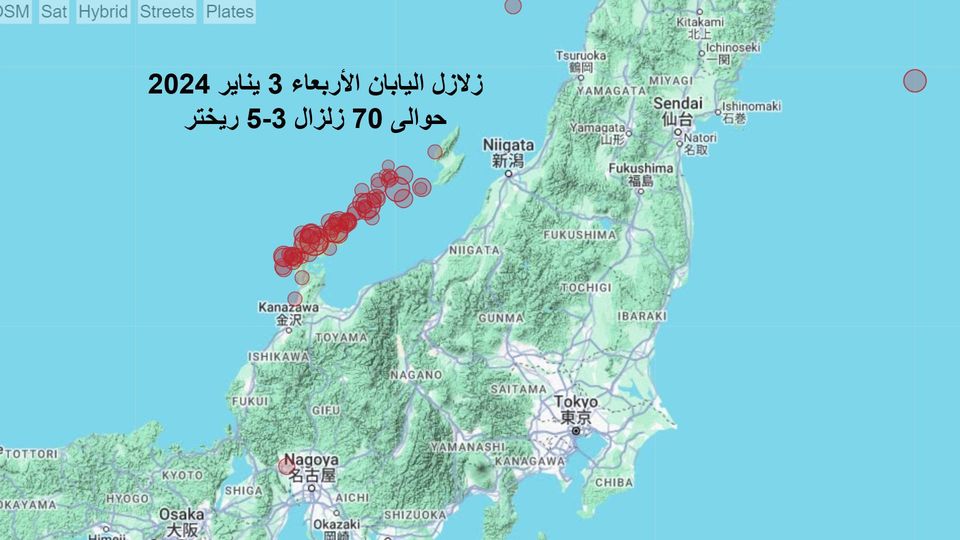وكتب “شراقي” على صفحته الشخصية بـ "فيس بوك" تحت عنوان “ خسائر زلزال اليابان 2024”، وقال:" وصل عدد ضحايا زلزال الإثنين الأول من يناير 2024 فى اليابان بقوة 7.5 ريختر إلى 73 قتيل على الأقل، وانتشرت الحرائق في منطقة الزلزال، وتشققت الطرق وانهارت بعض المنشآت وحدث تسونامي متوسط مما ضاعف من الخسائر المادية، وما زالت التوابع الزلزالية مستمرة حتى الآن (حوالي 70 زلزالًا من 3-5 ريختر) خلال الـ 24 ساعة الماضية 3 يناير، ومن المتوقع أن ينخفض عددها ولكن هذا لايمنع من الحذر من حدوث زلازل أخرى أقل قوة من الزلزال الرئيسي 7.5 ريختر.