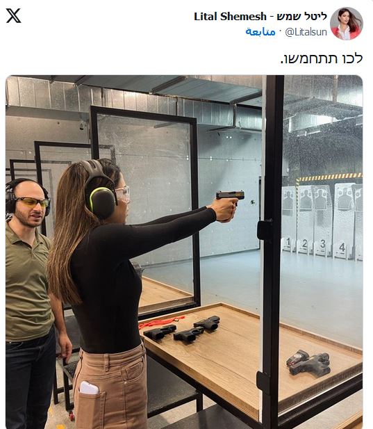 وسبق لشيمش أن نشرت صورة على حسابها في منصة "إكس"، وهي تتدرب على إطلاق النار، معلقة: "سلح نفسك".