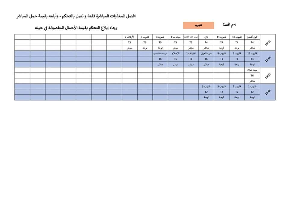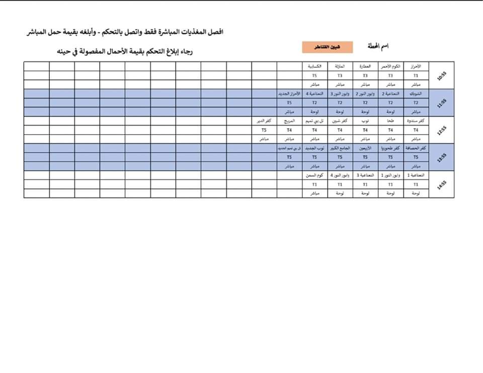 وتضمنت مواعيد تخفيف أحمال الكهرباء الجديدة في محافظة القليوبية أن تكون المدة ساعتين كما كان في الفترة الماضية عن كل منطقة تو قرية او مركز، وجاءت كالتالي وفق الجداول المعلنه: