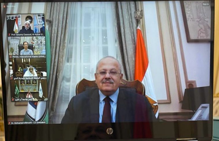 شارك الدكتور محمد الخشت رئيس جامعة القاهرة، في اجتماع مجلس أمناء الجامعة الإسلامية العالمية بباكستان، عبر تقنية الفيديو كونفرانس، برئاسة الرئيس الباكستاني عارف علوي، رئيس جمهورية باكستان والرئيس الأعلى للجامعة، وذلك في القصر الرئاسي بالعاصمة إسلام آباد.