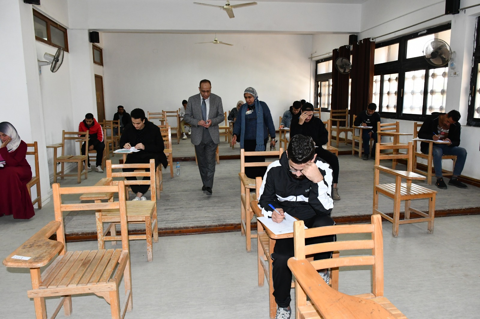 ومن جانبه واصل الدكتور محمد عبد النعيم نائب رئيس الجامعة لشئون التعليم والطلاب جولاته التفقدية داخل اللجان الامتحانية، مشددًا على أن تكون أسئلة الامتحان في الموضوعات التي درسها الطالب، طبقًا لتوصيف المقرر ولا يتم إدراج أسئلة من خارج المنهج المحدد بالتوصيف.