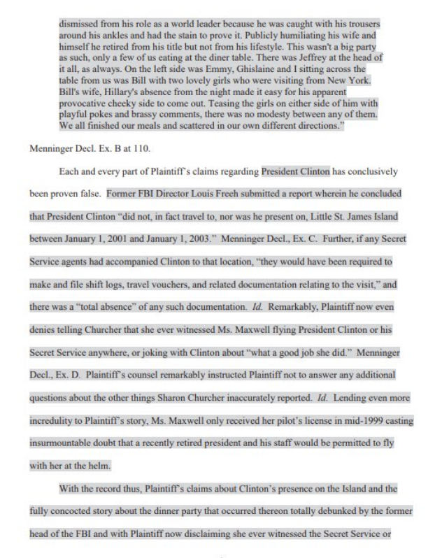 ومن الأسماء المتوقعة هو الرئيس الأمريكي السابق بيل كلينتون والذي كان رئيس أمريكا من عام 1993 لعام 2001، وهو أول الأشخاص في الوثائق وثبت وجوده في جزيرة جيفري والظاهر أنه متورط في القضية.