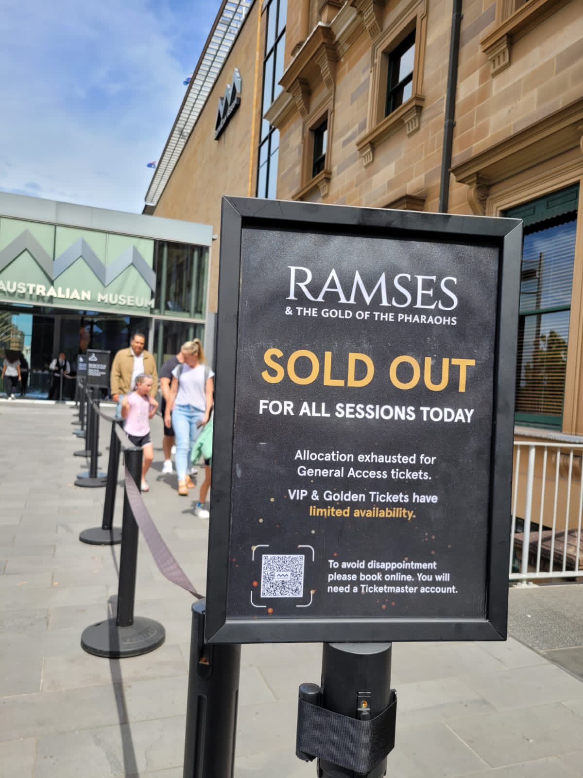 حقق معرض رمسيس وذهب الفراعنة المقام في مدينة سيدني بأستراليا إقبالًا جماهيريًا كبيرًا بالتزامن مع الاحتفالات بأعياد الكريسماس ورأس السنة الميلادية حيث تم نفاد جميع تذاكر شهر يناير.