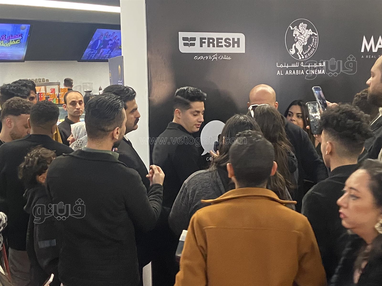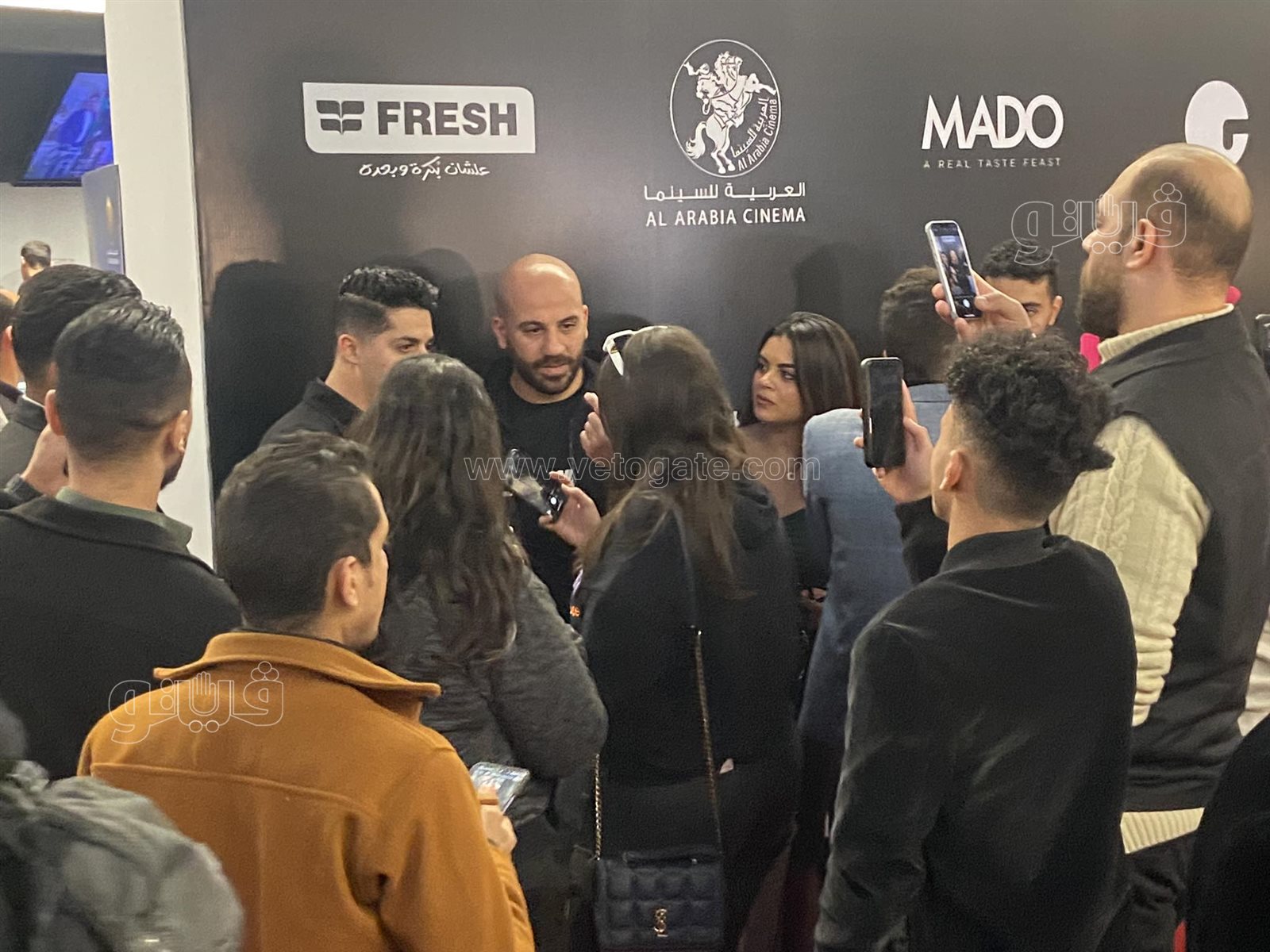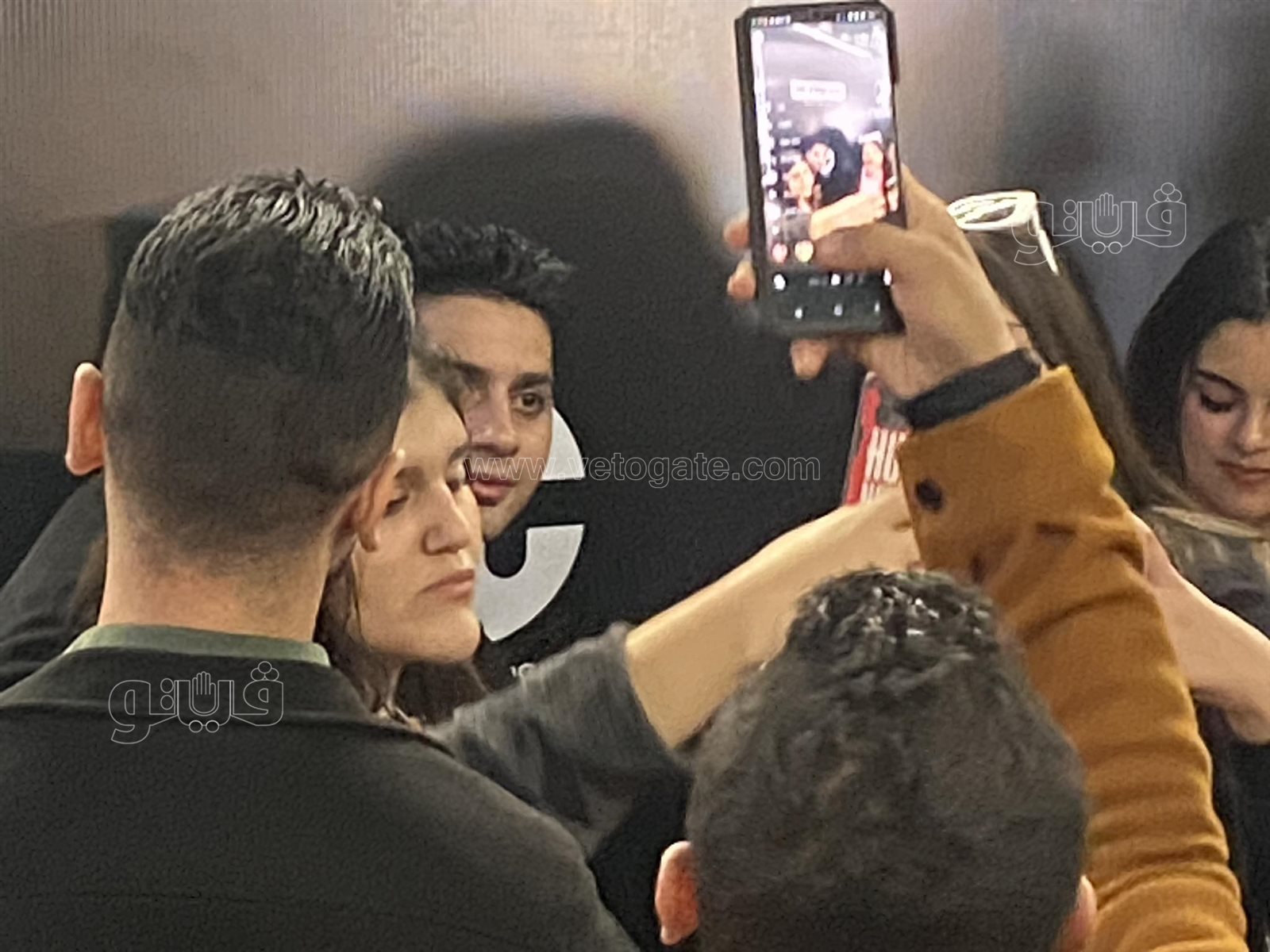 عنبة يلتقط صورا تذكارية مع الجمهور في العرض الخاص لفيلم عصابة عظيمة